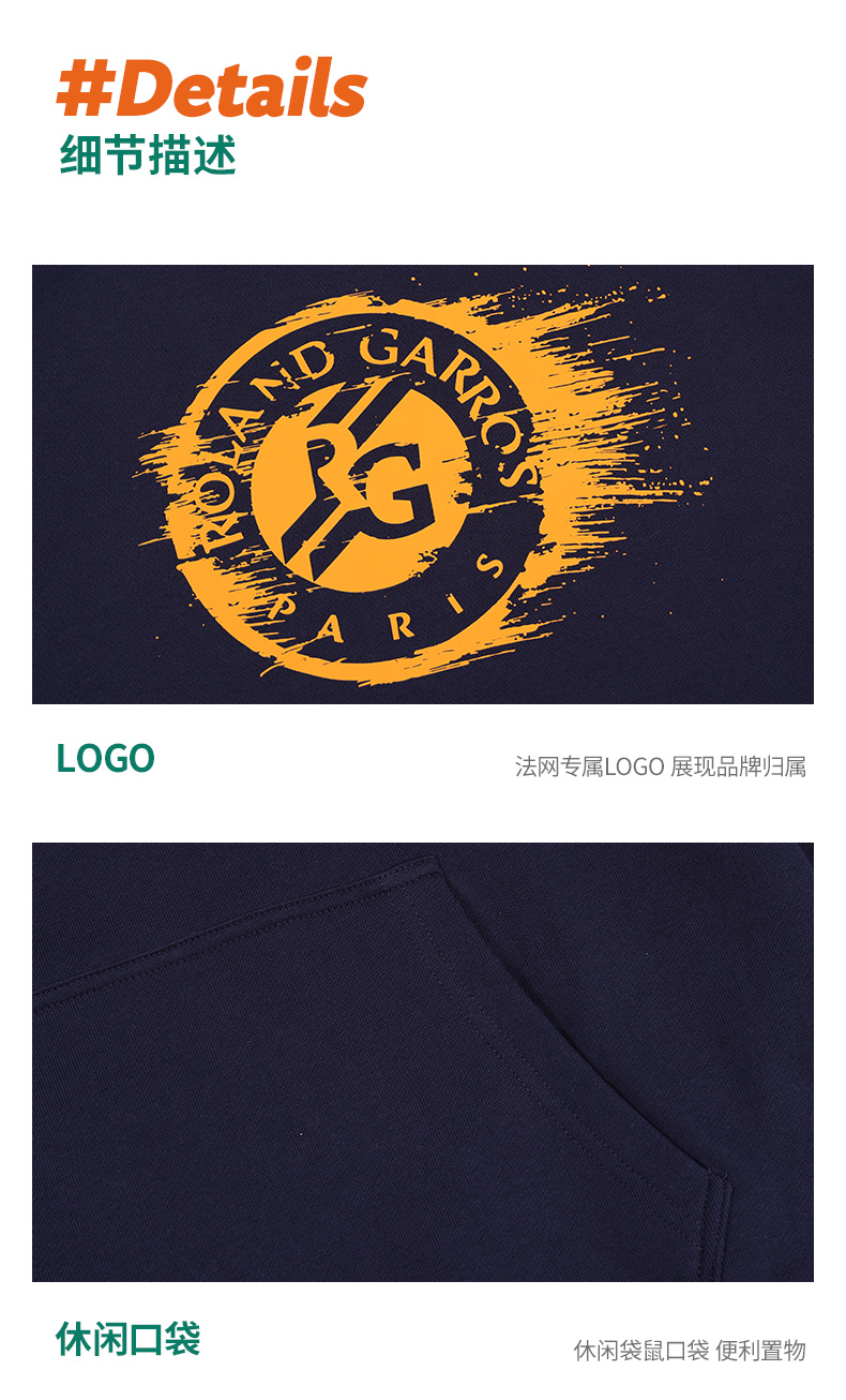 罗兰加洛斯法网连帽长袖时尚卫衣男女新款休闲百搭套头上衣