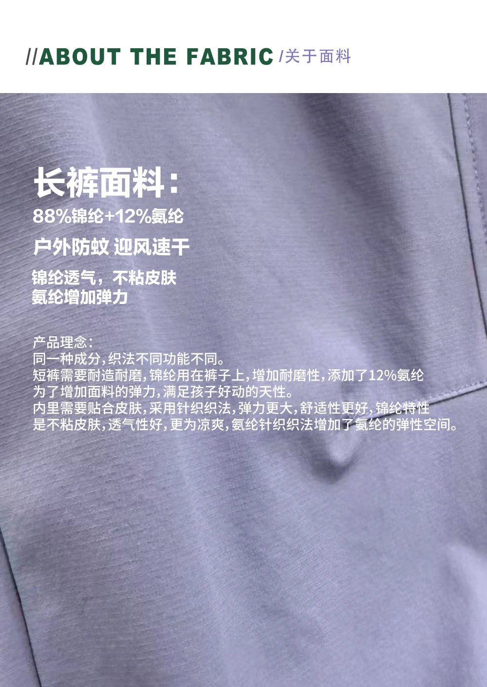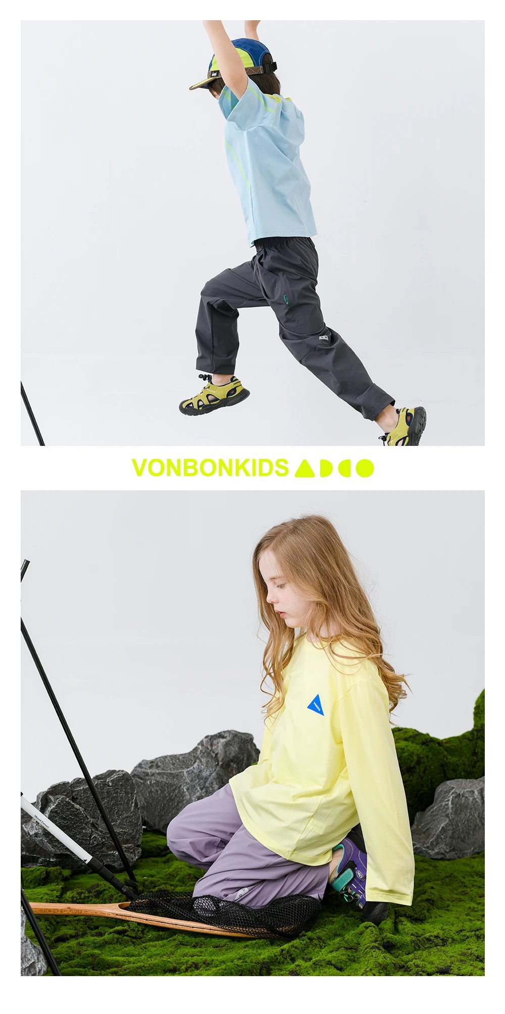vonbonkids 2026新款山系户外单线格锦纶速干散口小脚裤 K07C26007