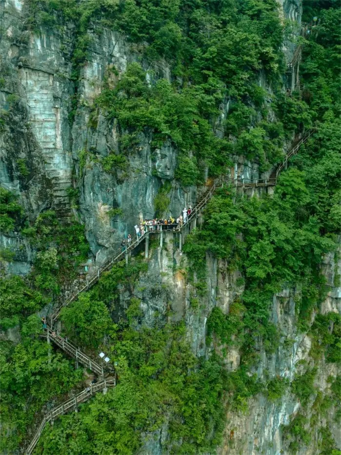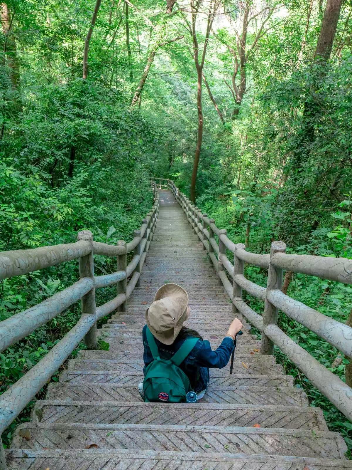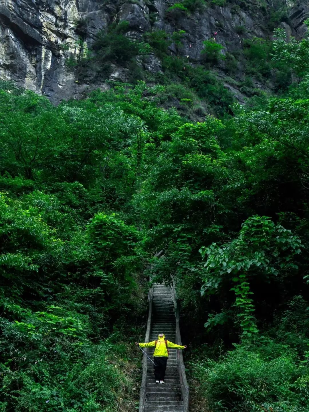 随着山路蜿蜒而上,可见各种奇花异草,争奇斗艳。山间古木参天,遮天蔽日,为游客提供了一片凉爽的避暑胜地。