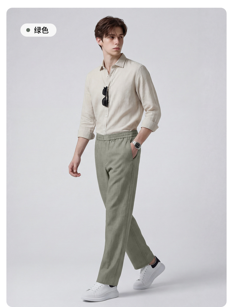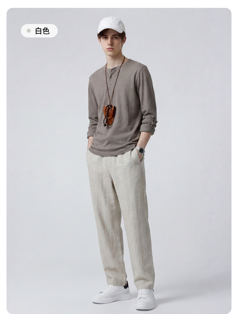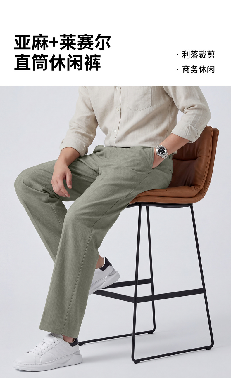 【含亚麻&含莱赛尔】圣得西宽松直筒休闲裤男款2026新款春季裤子