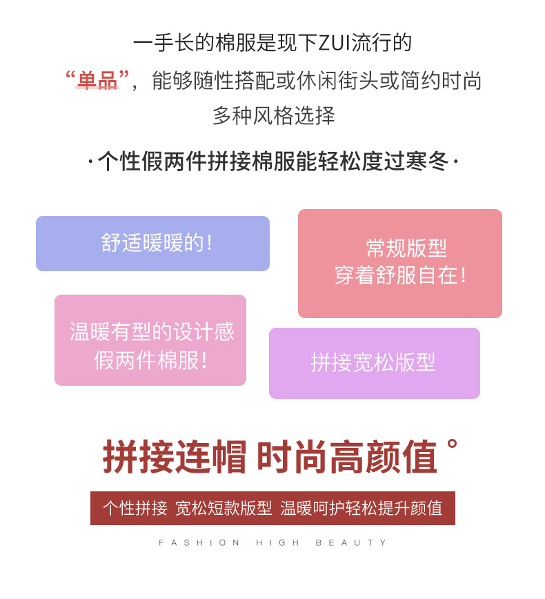 冬季短款羽绒棉服棉衣 新款宽松韩版时尚百搭连帽棉袄加厚外套