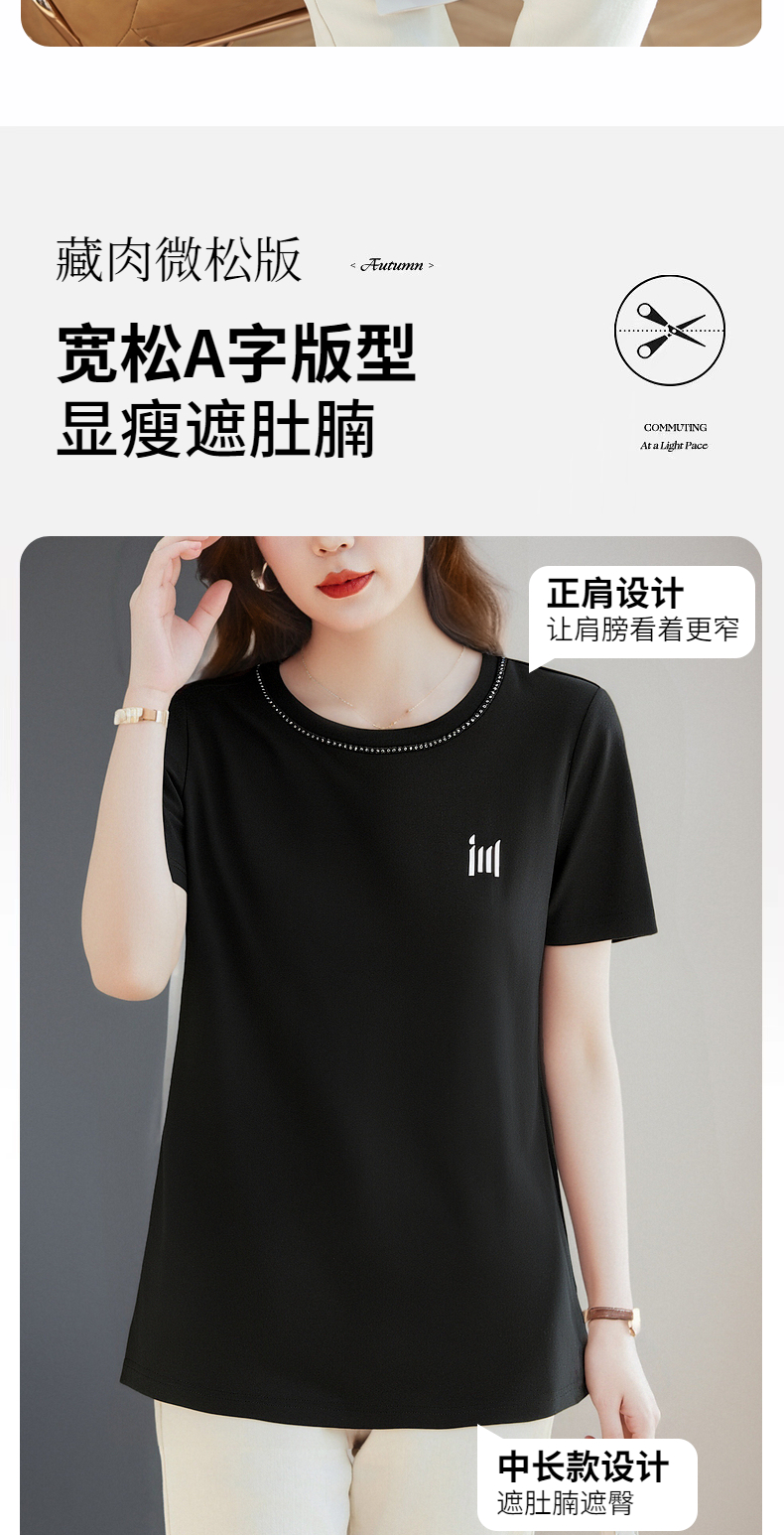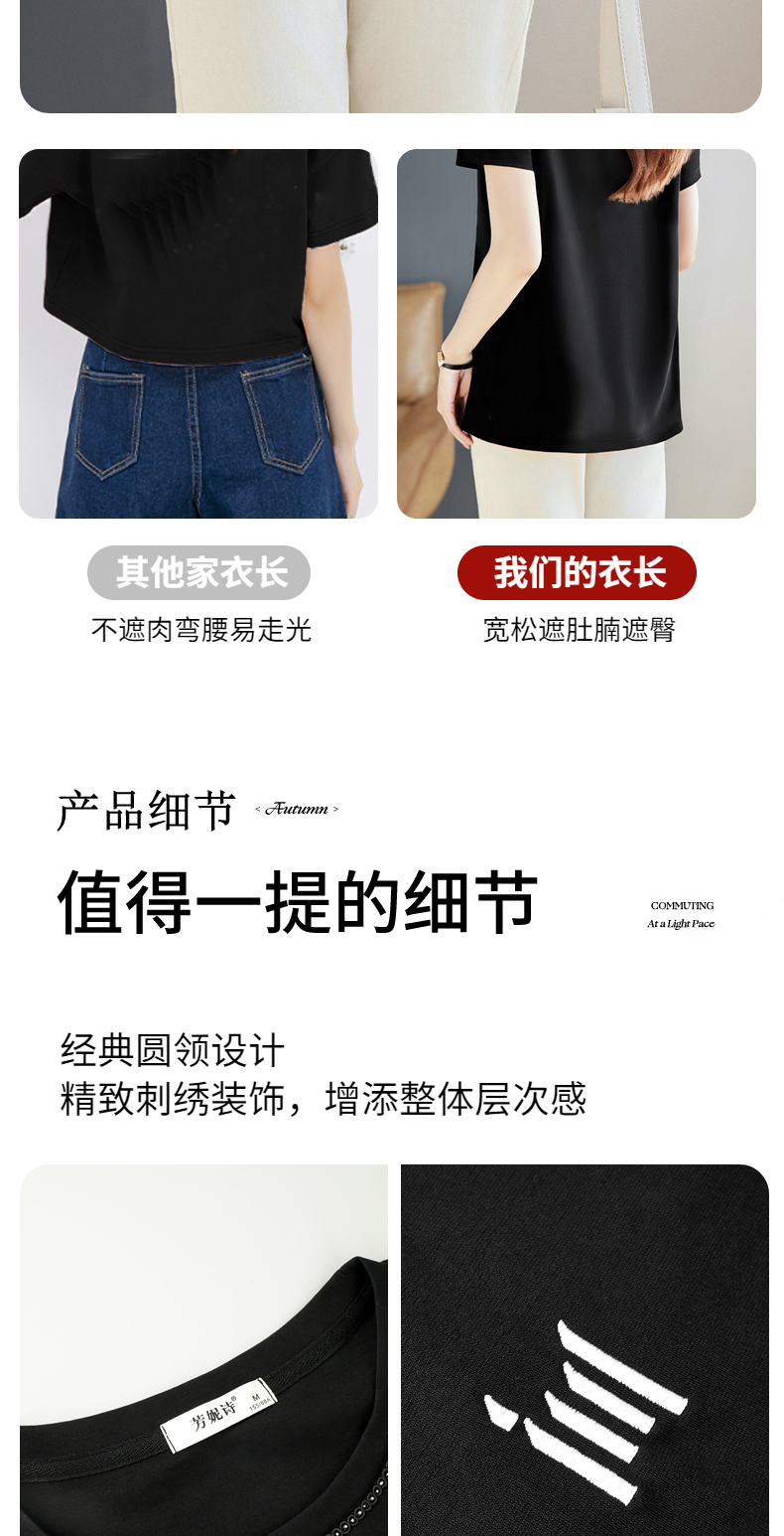 黑色短袖t恤女宽松2025新款夏季休闲纯棉大码女装胖mm半袖上衣薄