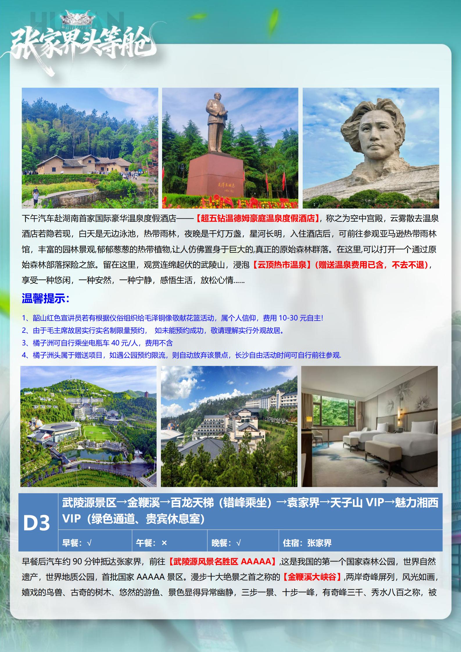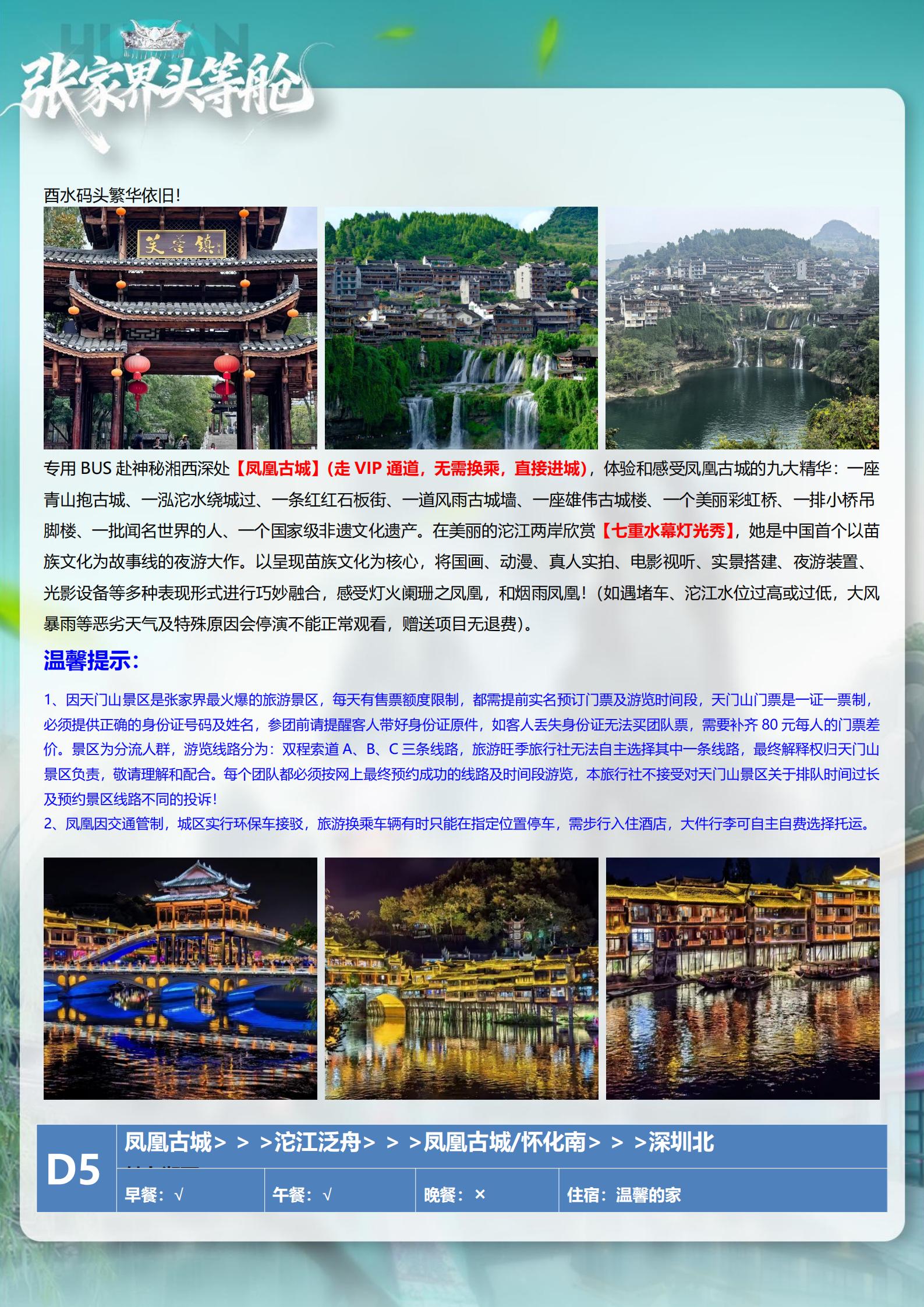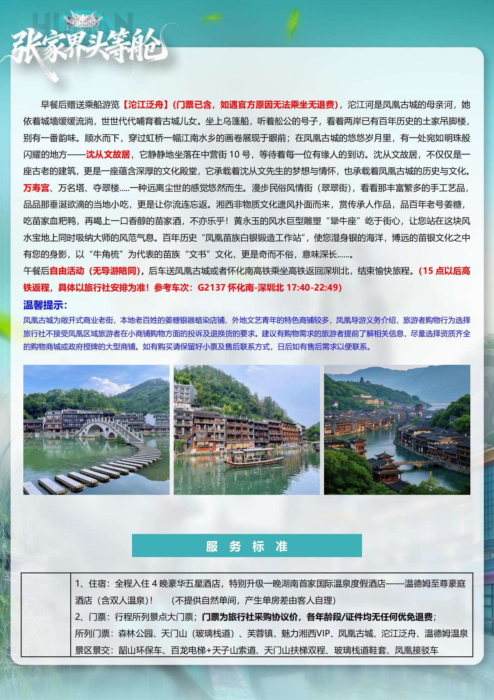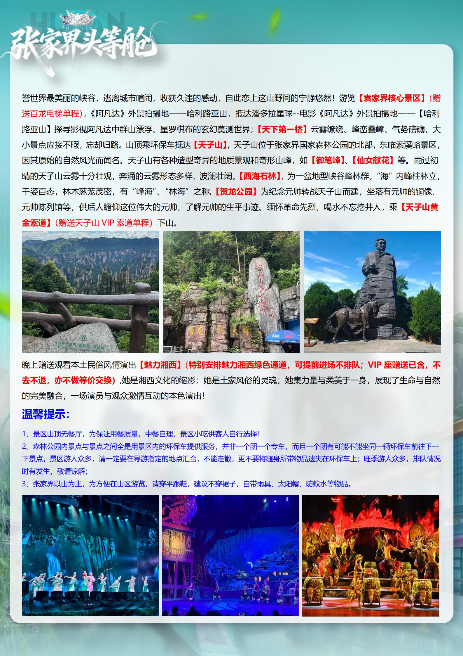 <湖南长沙+韶山+张家界森林公园+天门山+芙蓉镇+凤凰古城5天高铁团(15-23 人小团)>天子山VIP+魅力湘西 VIP+温德姆温泉