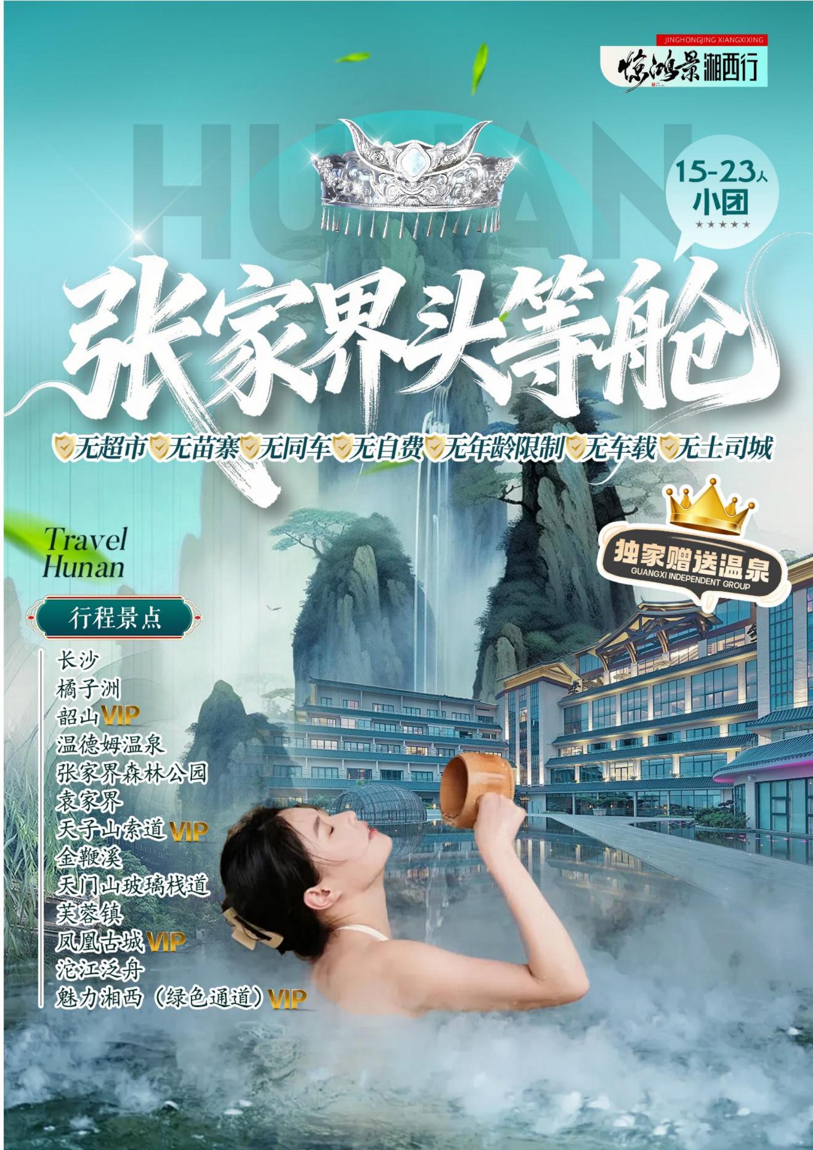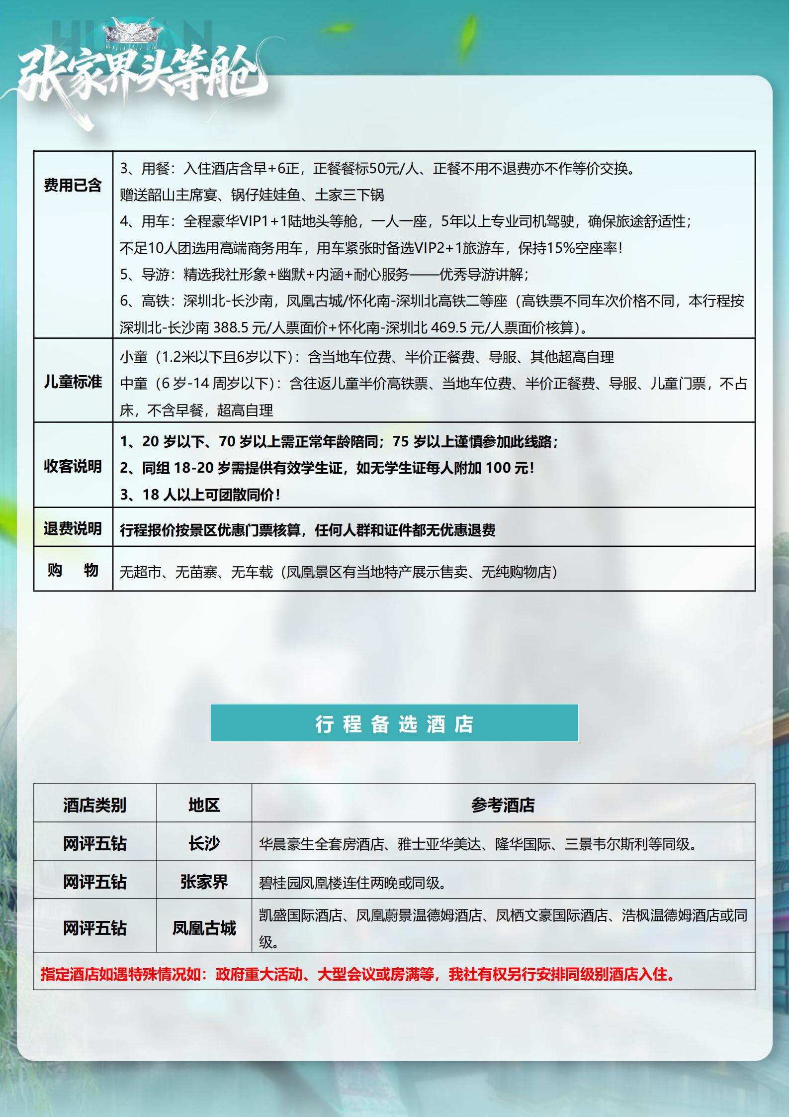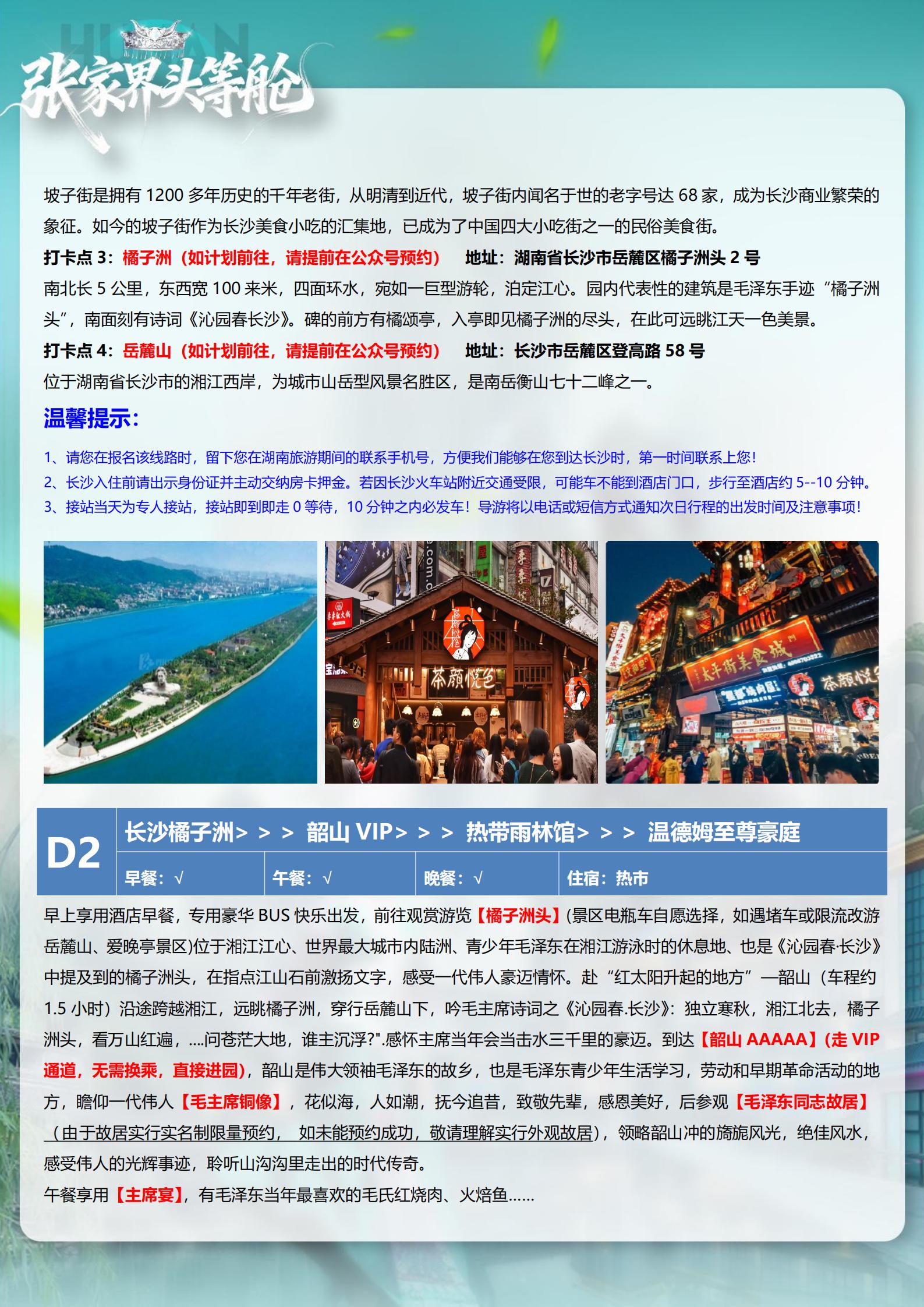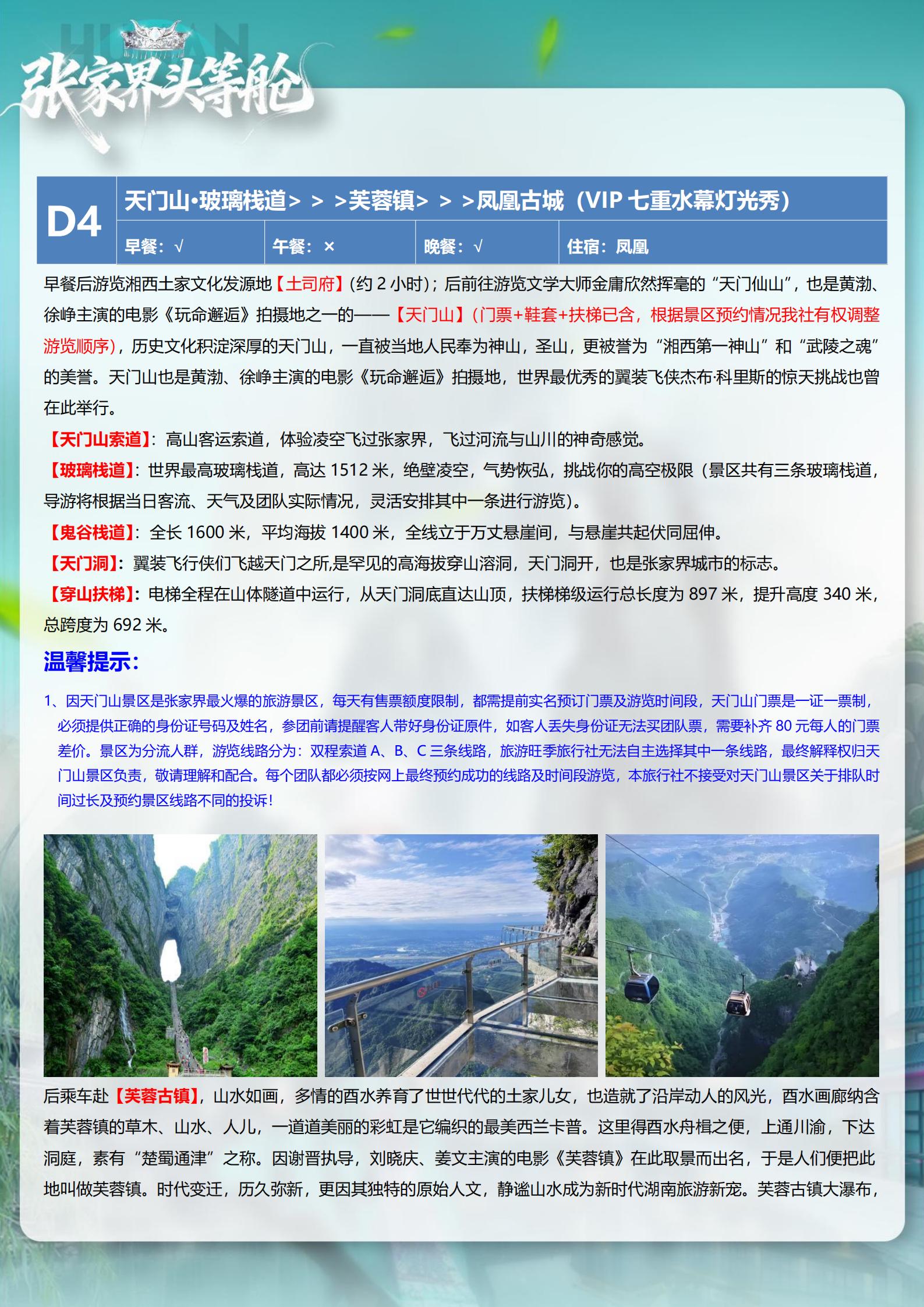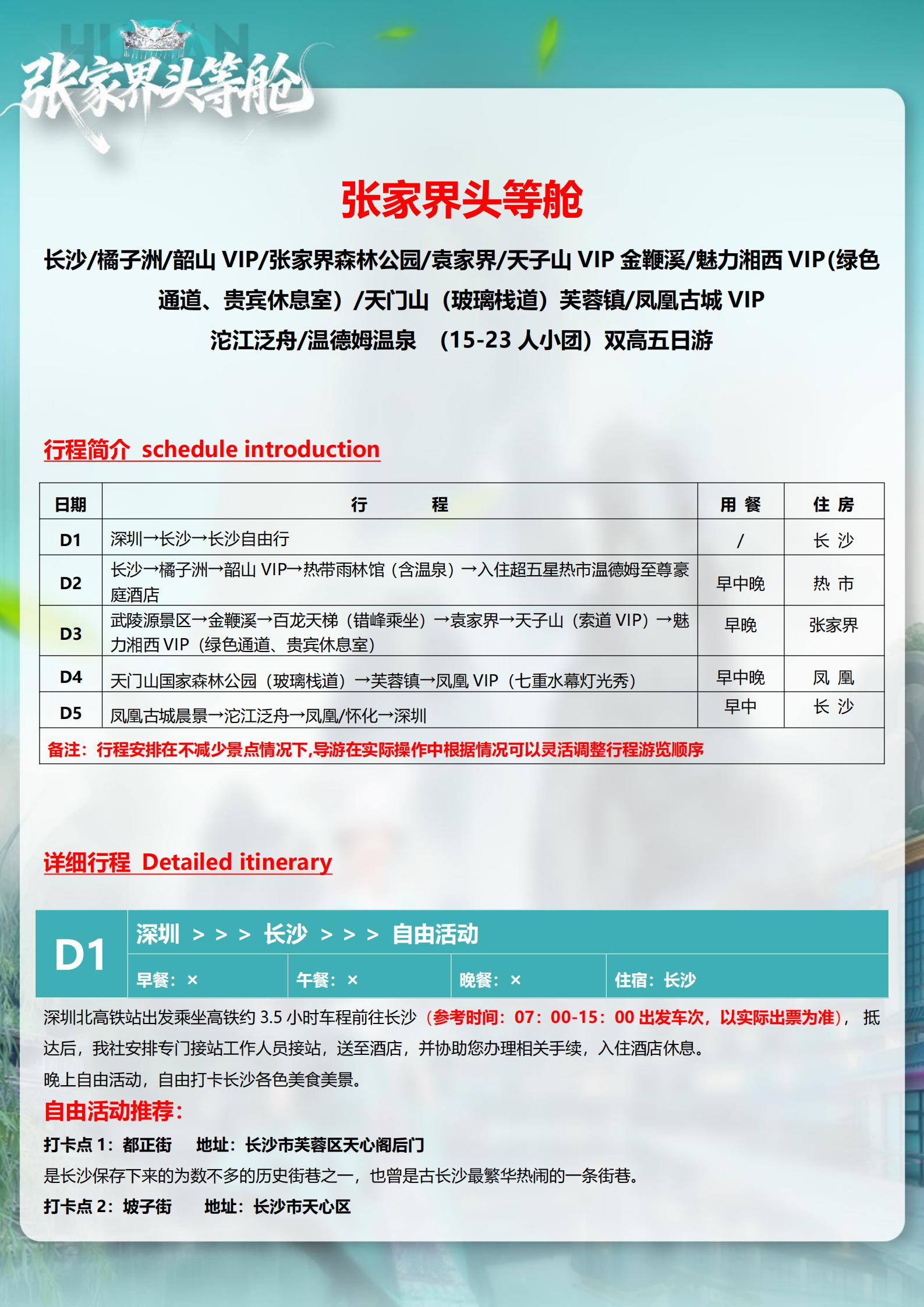 <湖南长沙+韶山+张家界森林公园+天门山+芙蓉镇+凤凰古城5天高铁团(15-23 人小团)>天子山VIP+魅力湘西 VIP+温德姆温泉