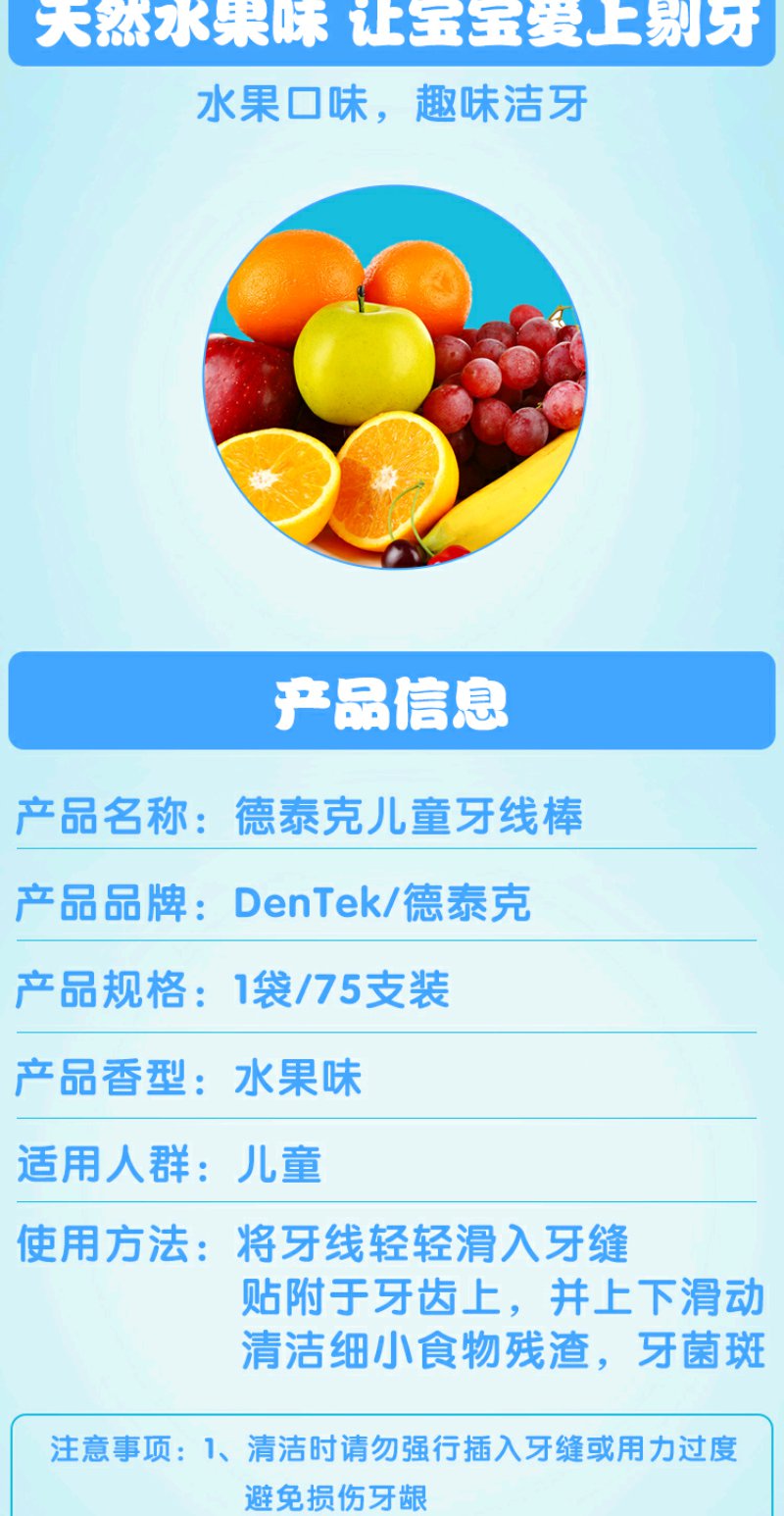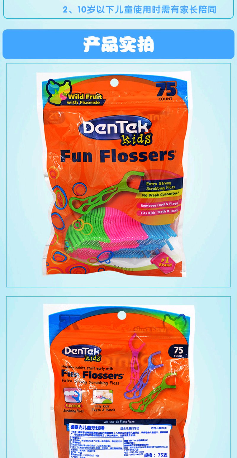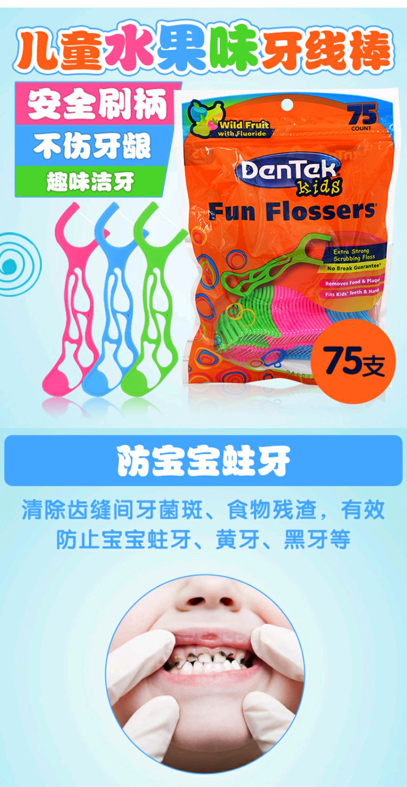 【品牌直供】德泰克儿童水果味牙线棒 75支