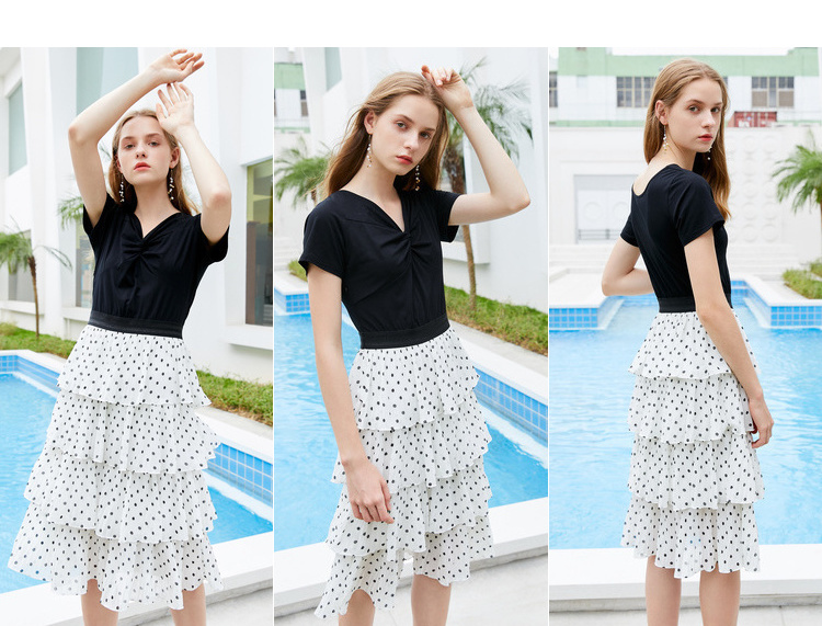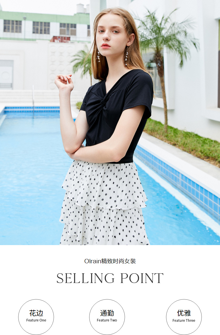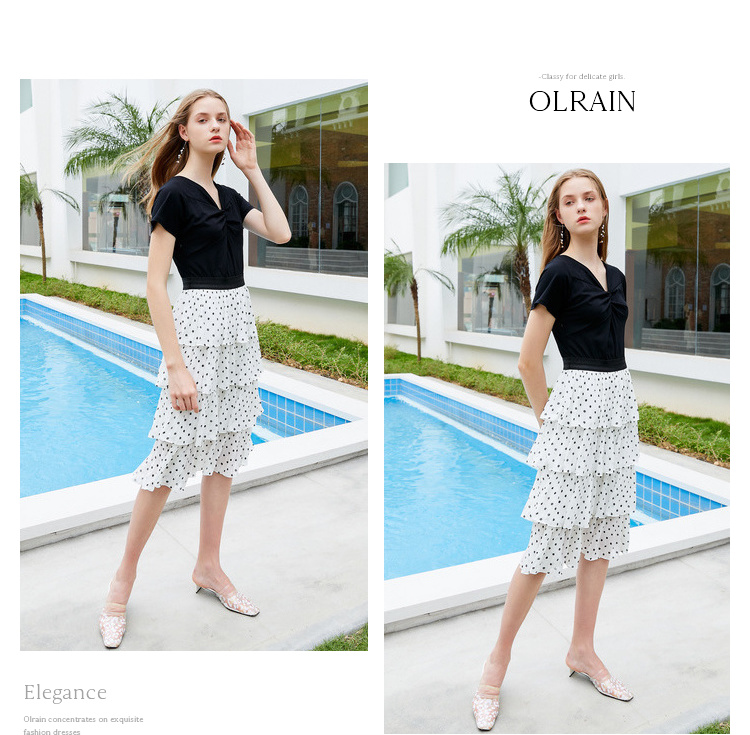 OLrain法式高级穿搭黑白波点短袖连衣裙女夏季2022气质显瘦裙