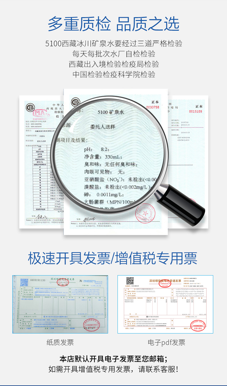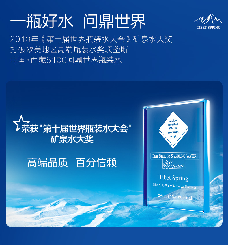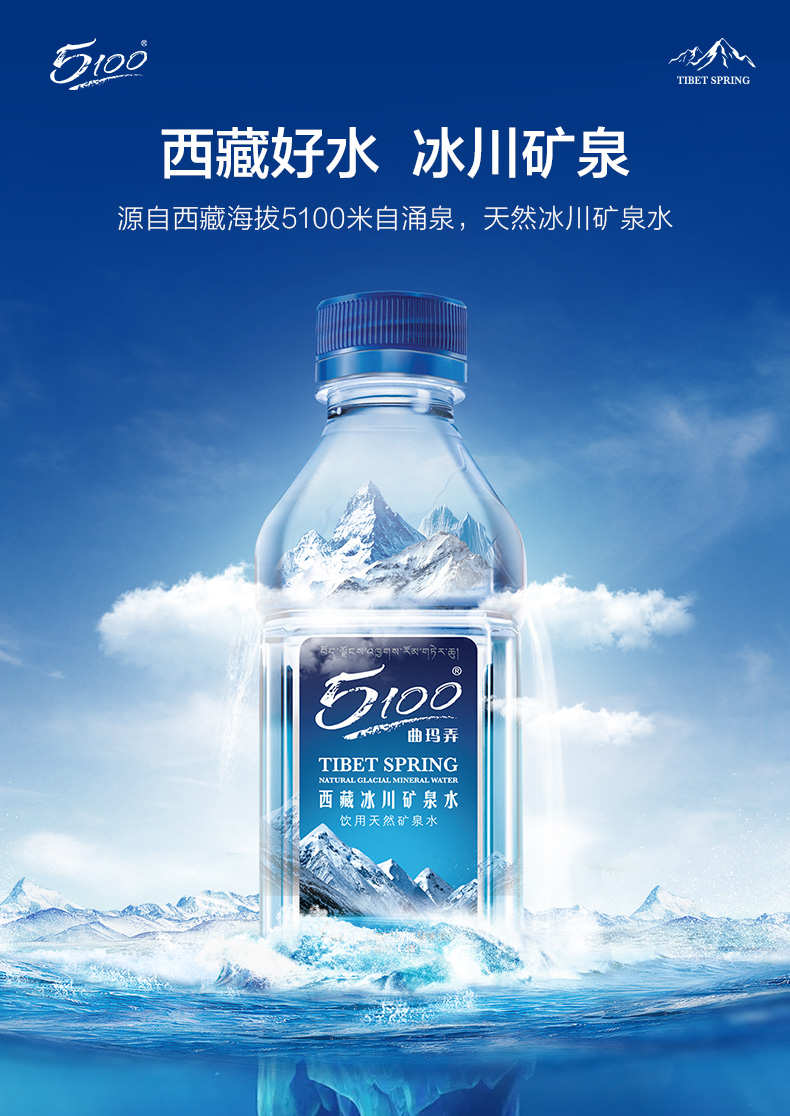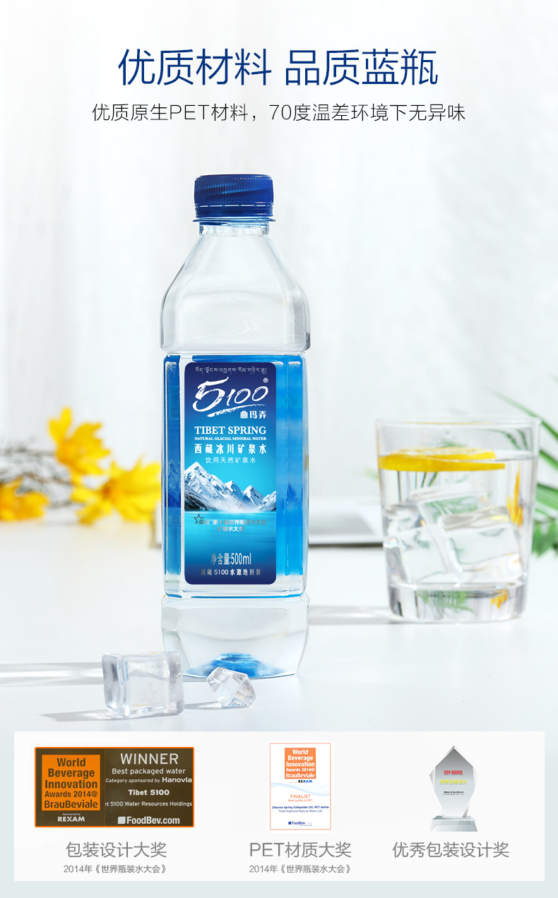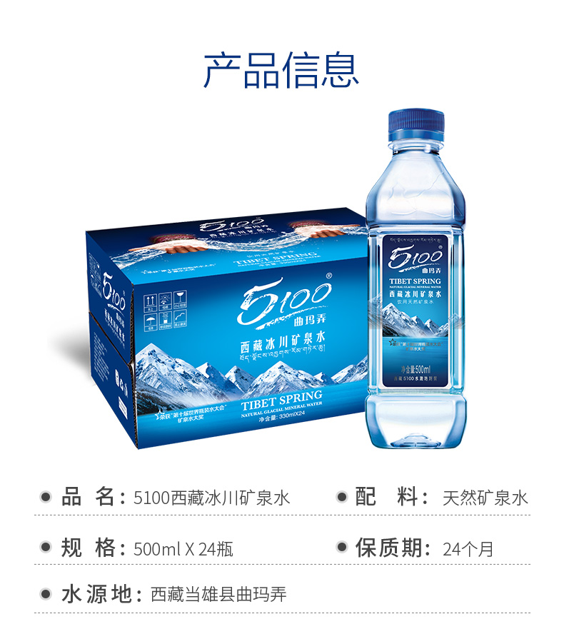 5100 西藏冰川 饮用天然矿泉水500ml*24瓶 弱碱性水 整箱装