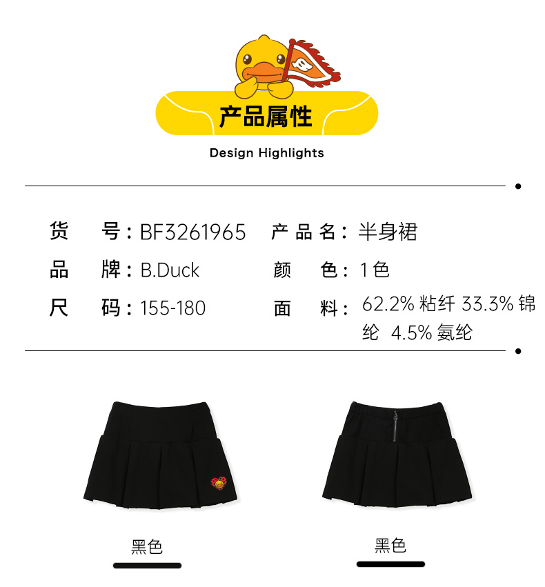 B.Duck小黄鸭成人服饰女装冬季百褶短裙155-175码 BF3261965