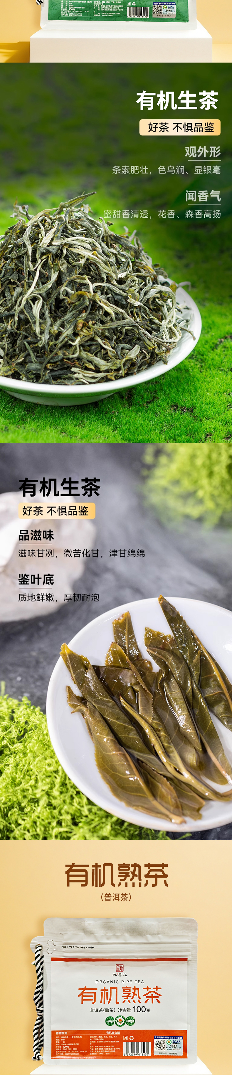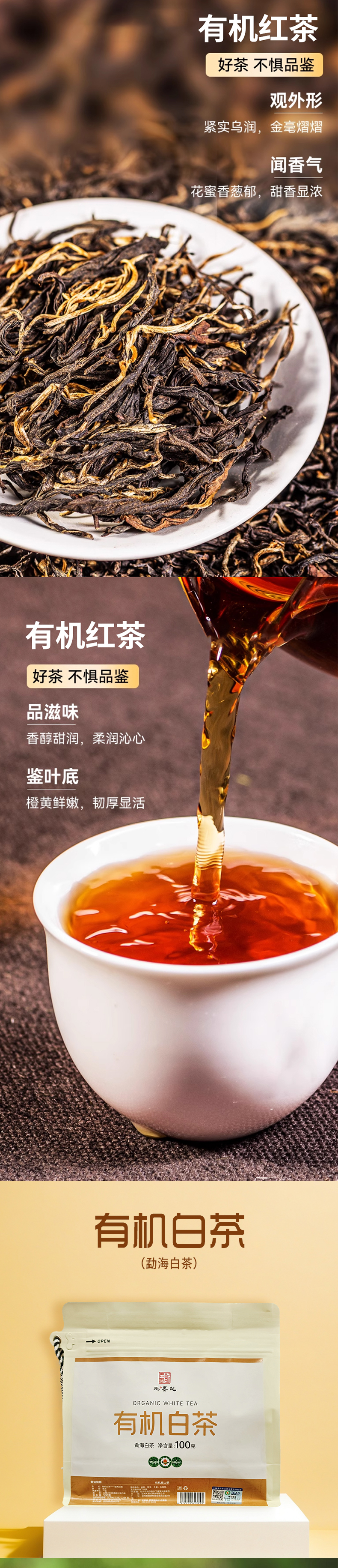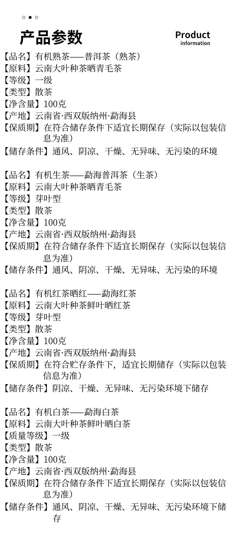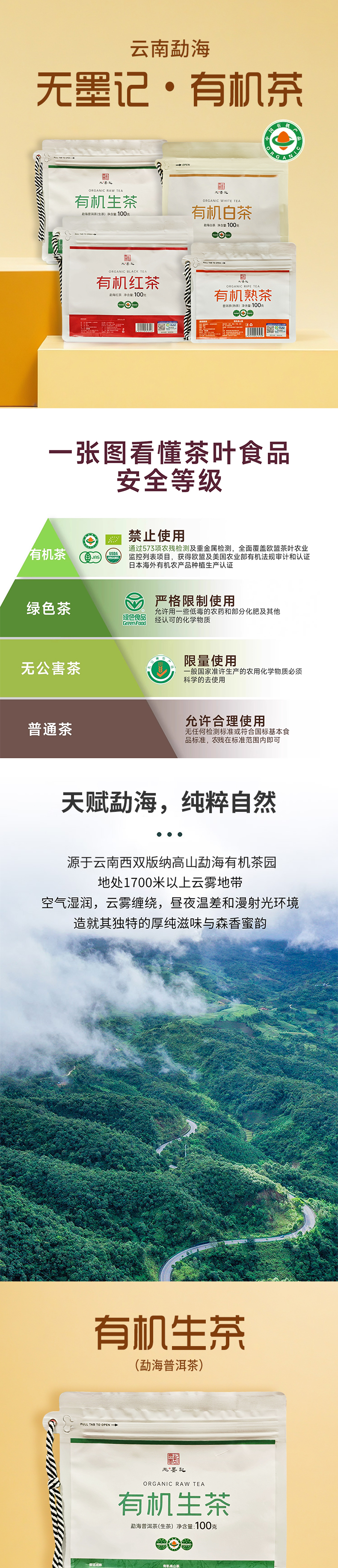 无墨记有机白茶-勐海白茶丨红茶晒红-勐海红茶丨生茶-勐海普洱茶(生茶)丨熟茶-普洱茶(熟茶) 100克