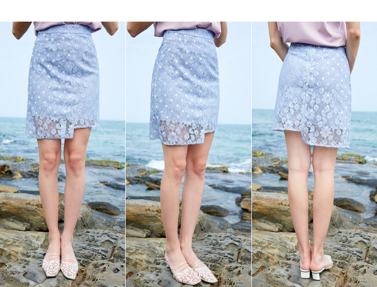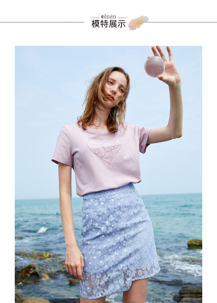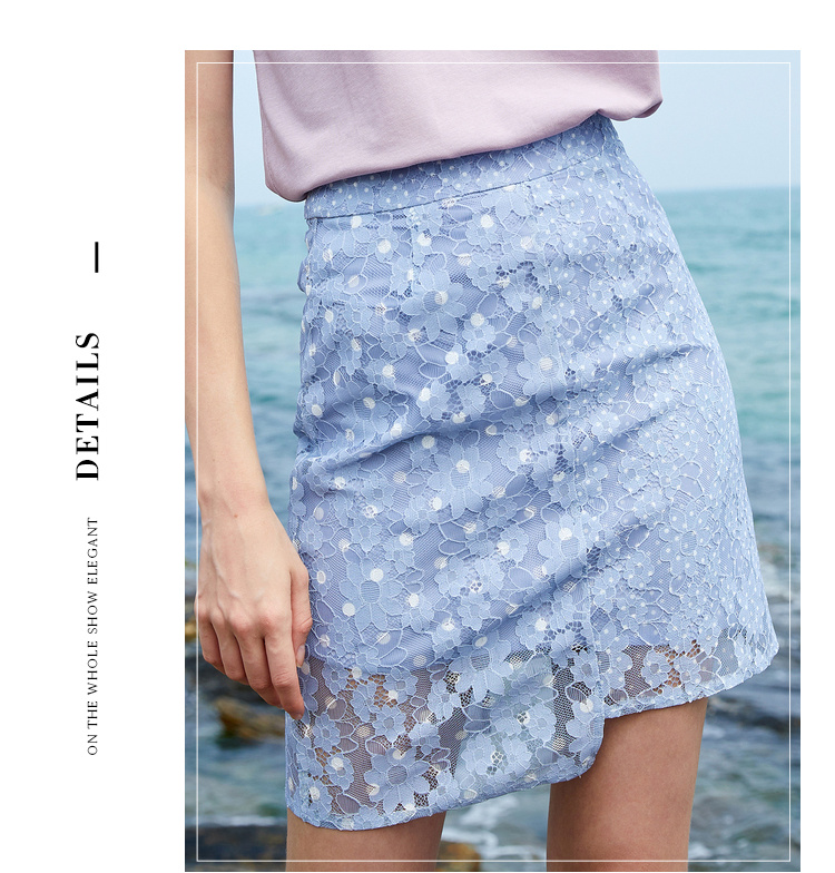 欧芮儿夏装2019新款女装蕾丝半身裙短款女不规则短裙高腰女裙子
