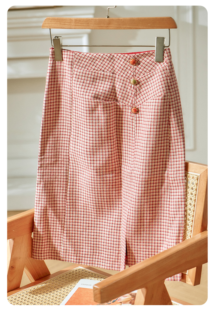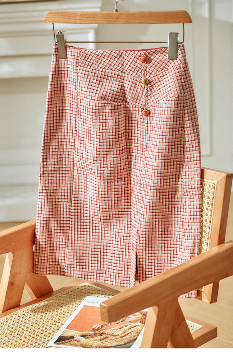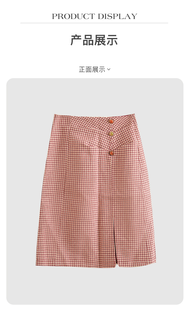 欧芮儿格子半身裙中长款女高腰显瘦2020新款冬季a字包臀裙