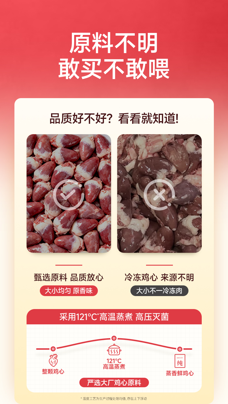 【新品】【蒸香鲜鸡心】宽福 整颗鸡心 富含牛磺酸 维生素B族 铁锌等矿物质元素 助提免疫 原料透明 开袋即食