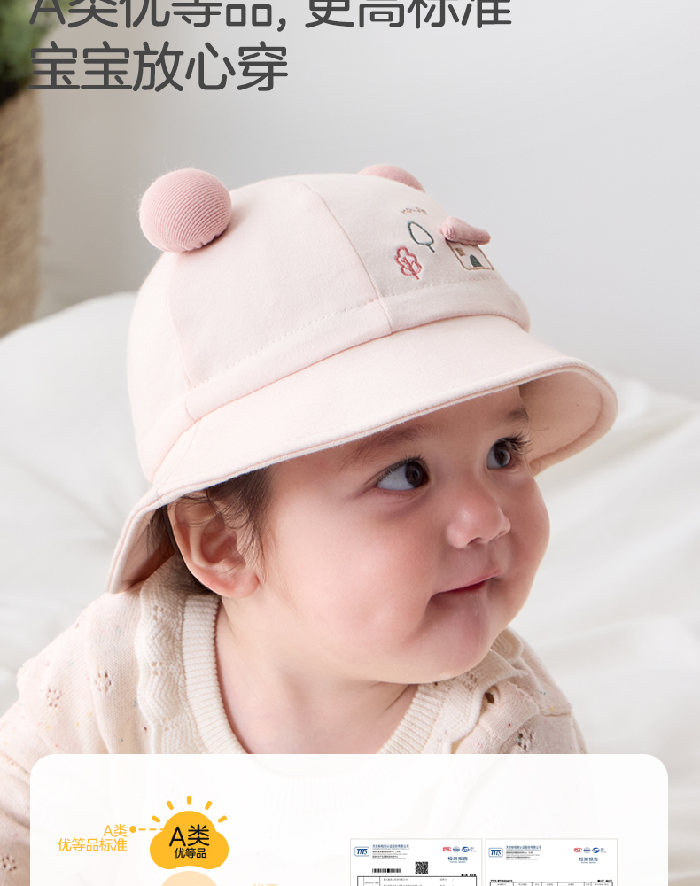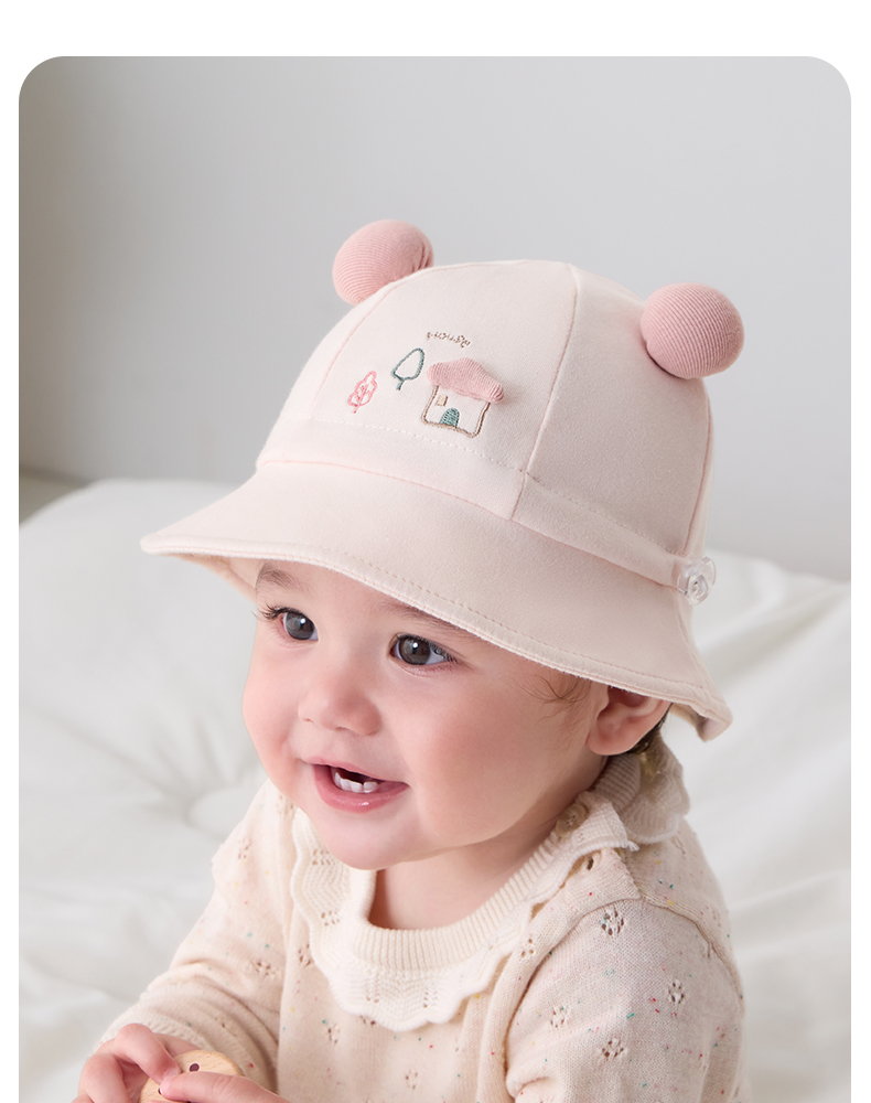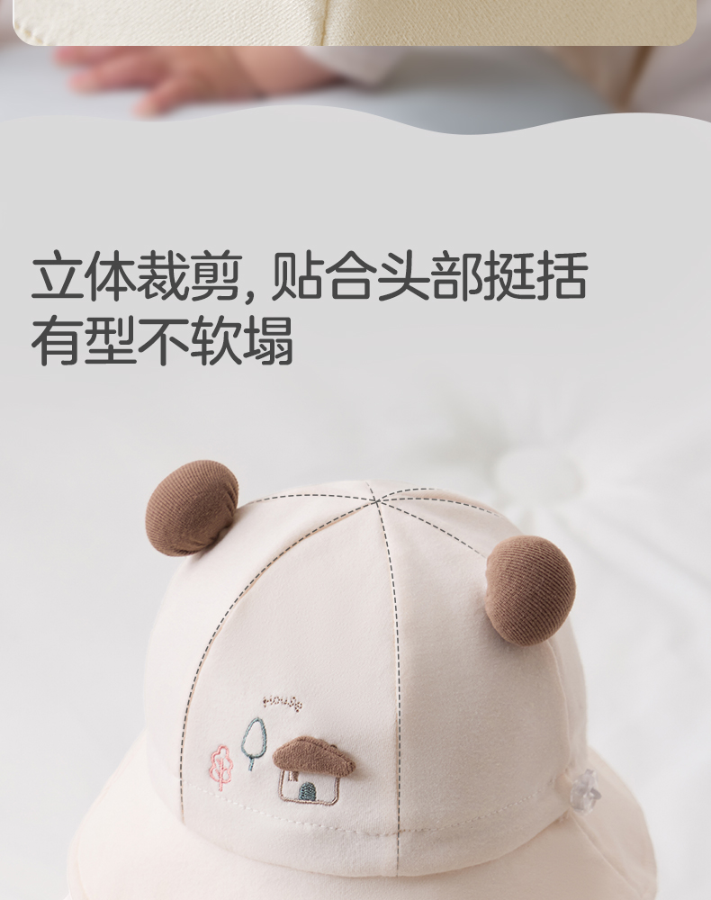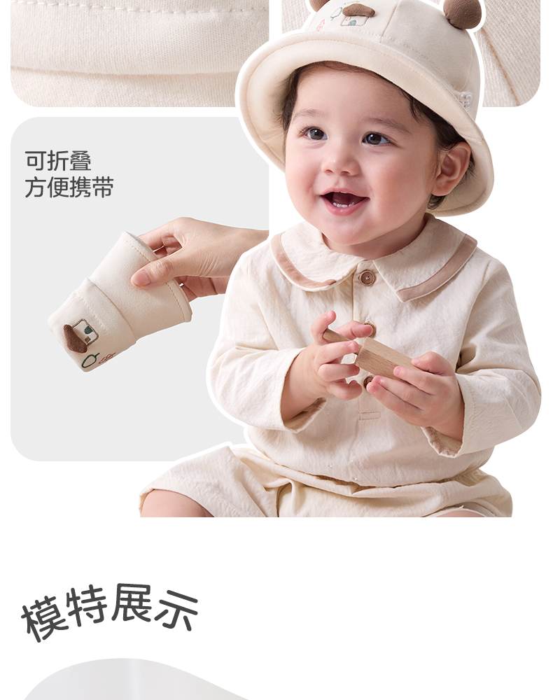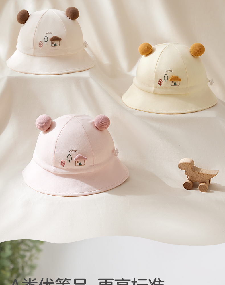 粒粒阳光婴儿帽子新生儿透气遮阳沿帽外出宝宝百搭木盆帽