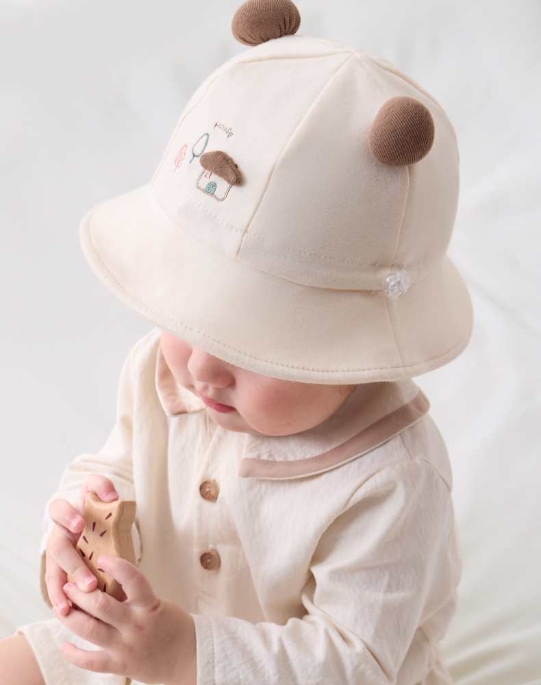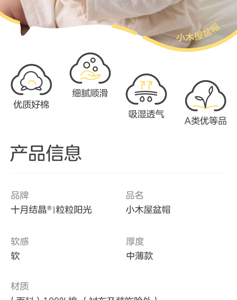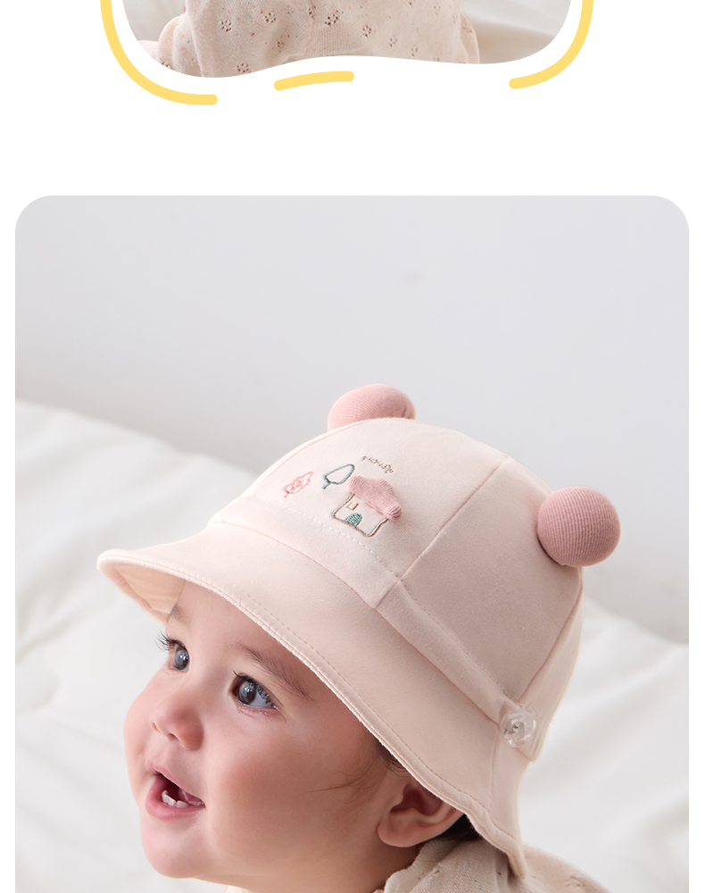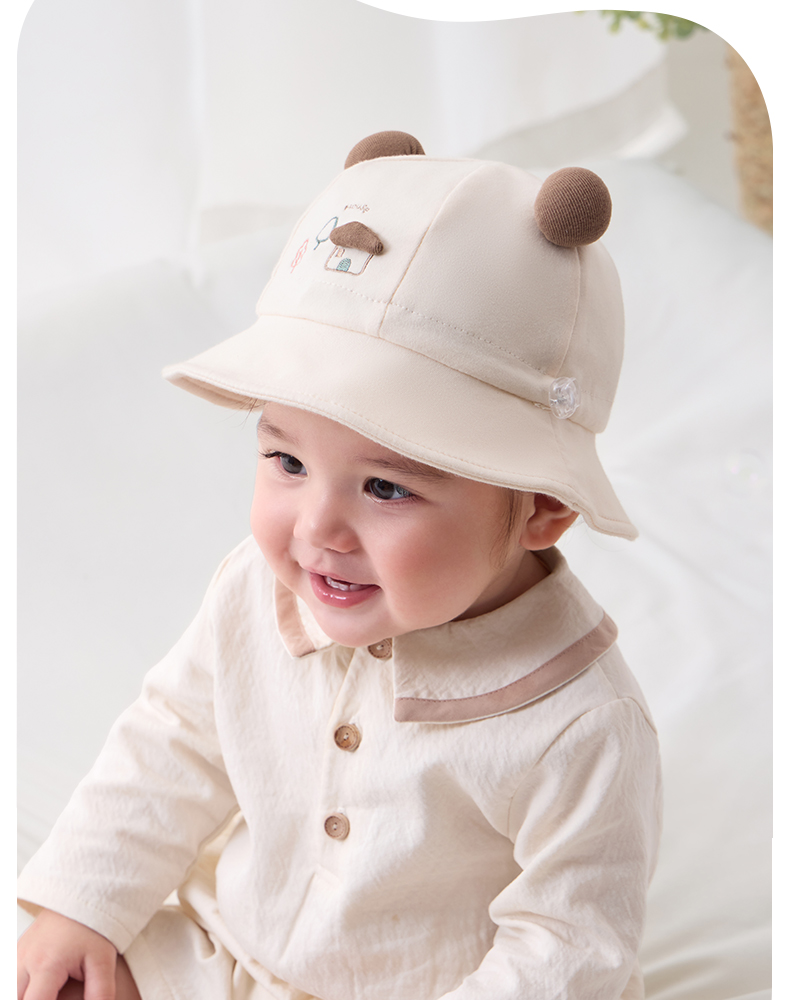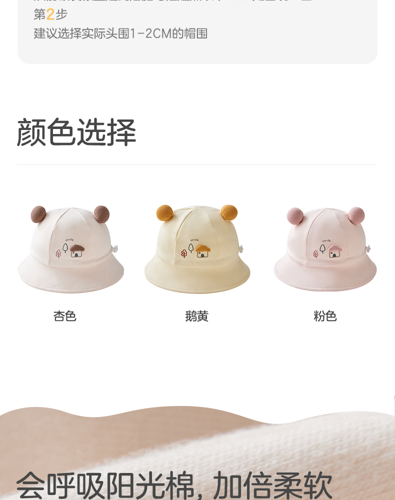 粒粒阳光婴儿帽子新生儿透气遮阳沿帽外出宝宝百搭木盆帽