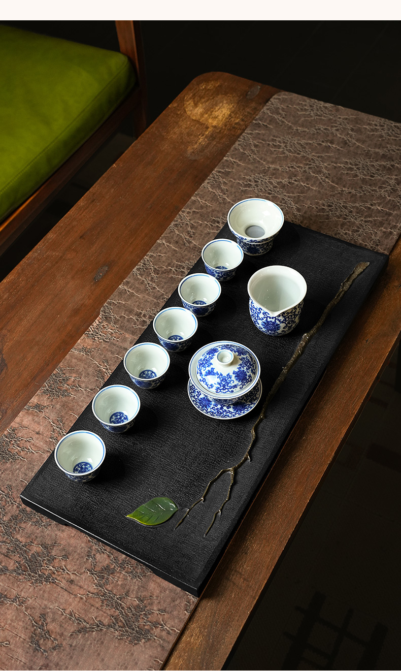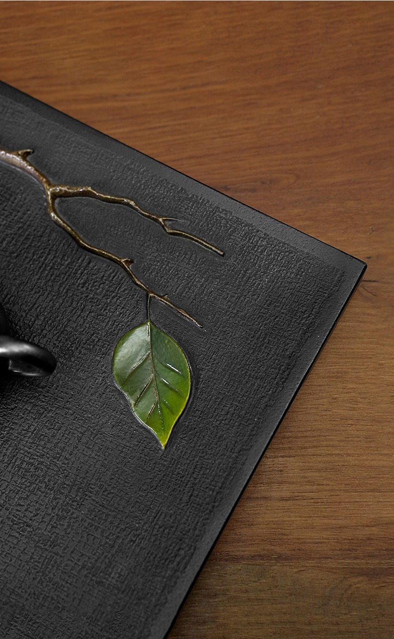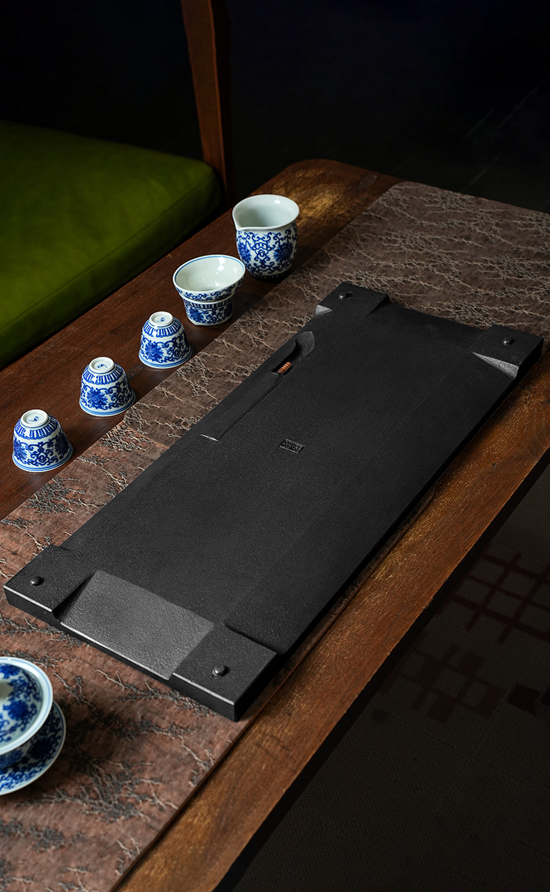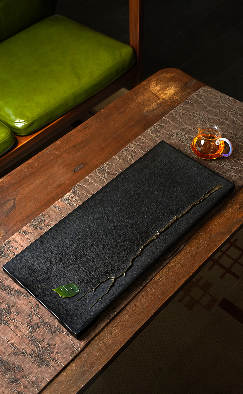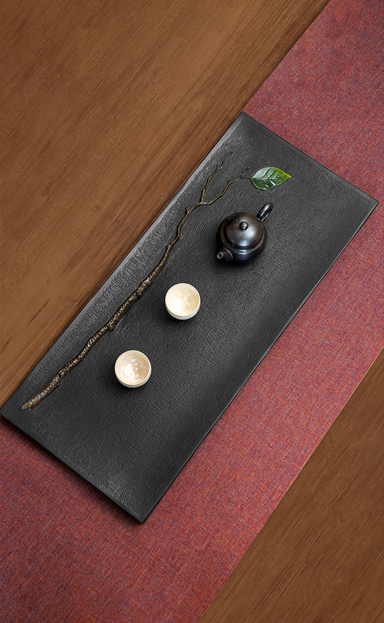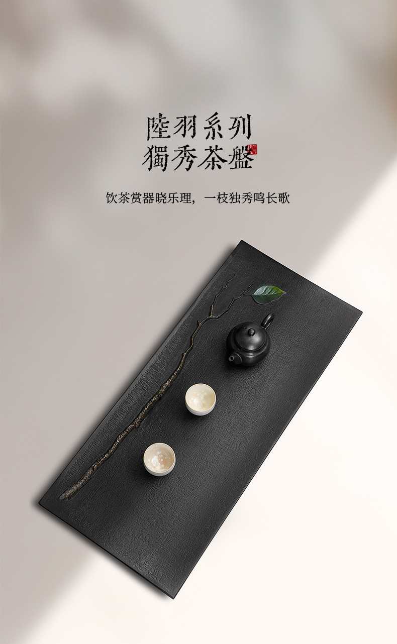 陆羽独秀茶盘高端乌金石湿泡茶台家用新中式轻奢茶具托盘石茶台