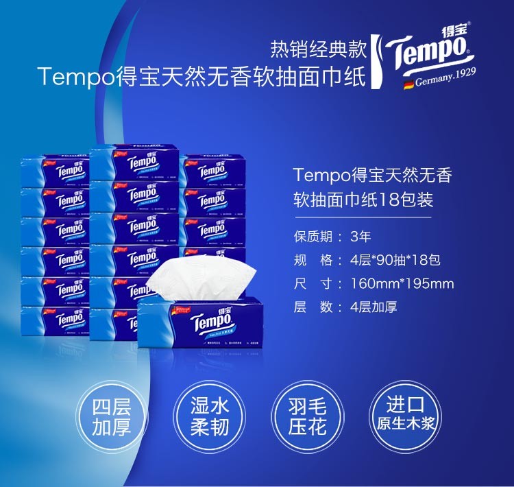 【分仓直发包邮】 维达得宝4层(天然无香)抽纸3提(18包)T2275J-6