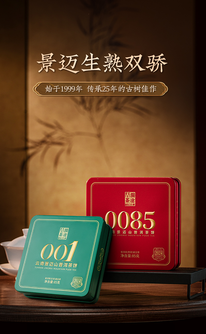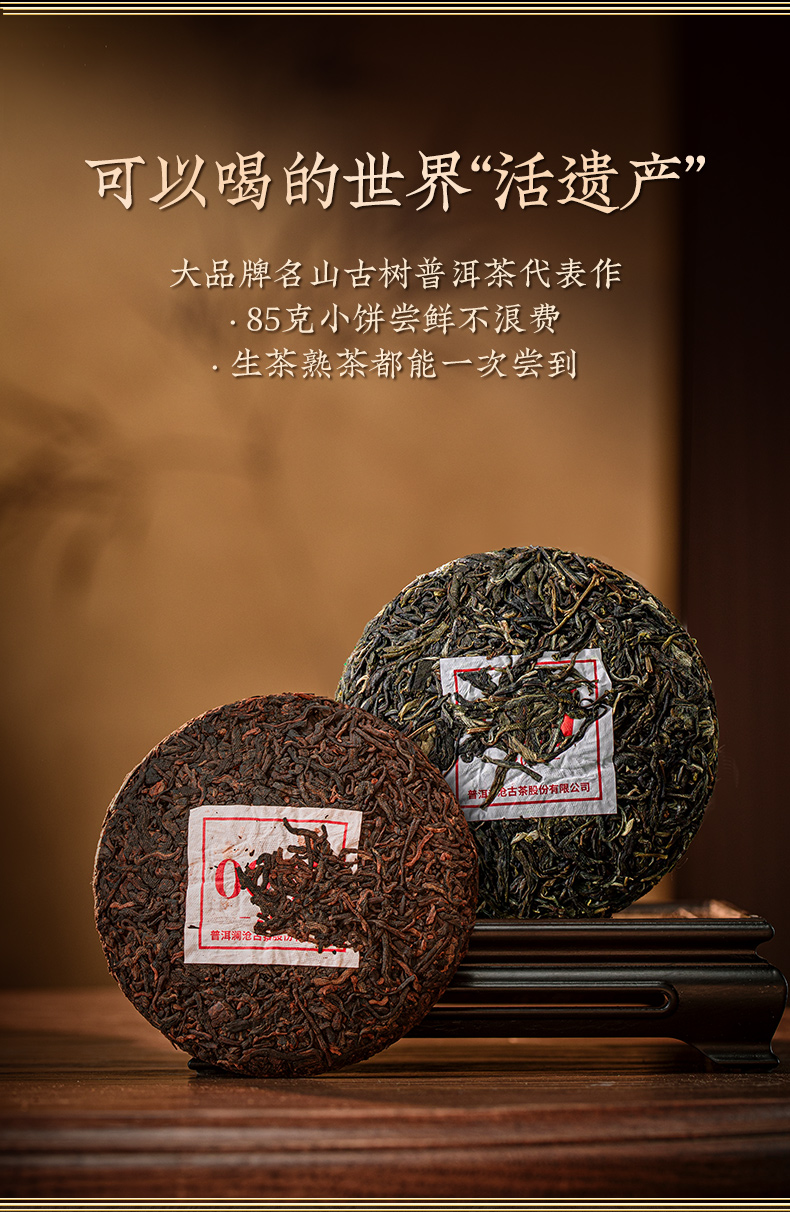 澜沧古茶2024年景迈001+景迈0085云南名山古树普洱茶春茶生茶熟茶小胖饼生熟组合170g(85g*2)