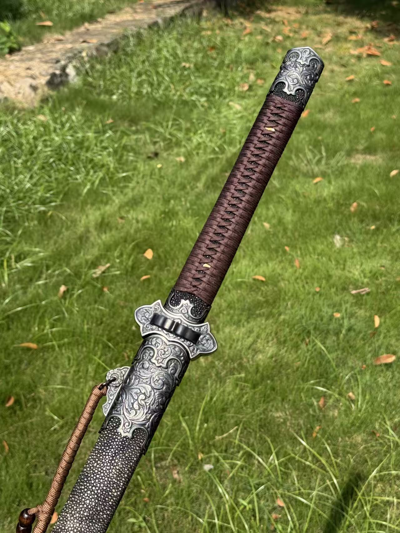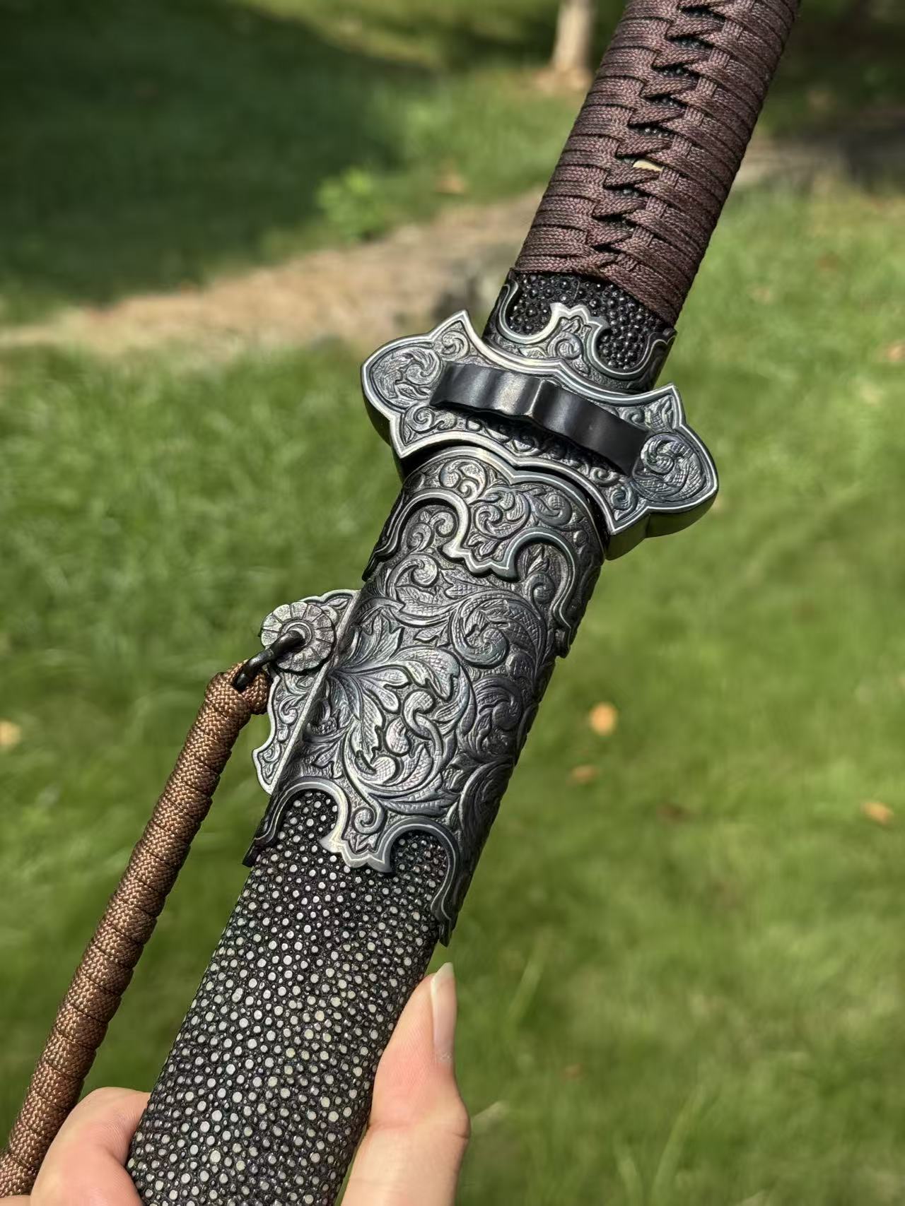 乌骓系列是我们的主打系列 铁地高雕金具镶嵌纯银丝 折叠锻打羽毛纹大马 纯手工研磨 我们很经典的一只作品
