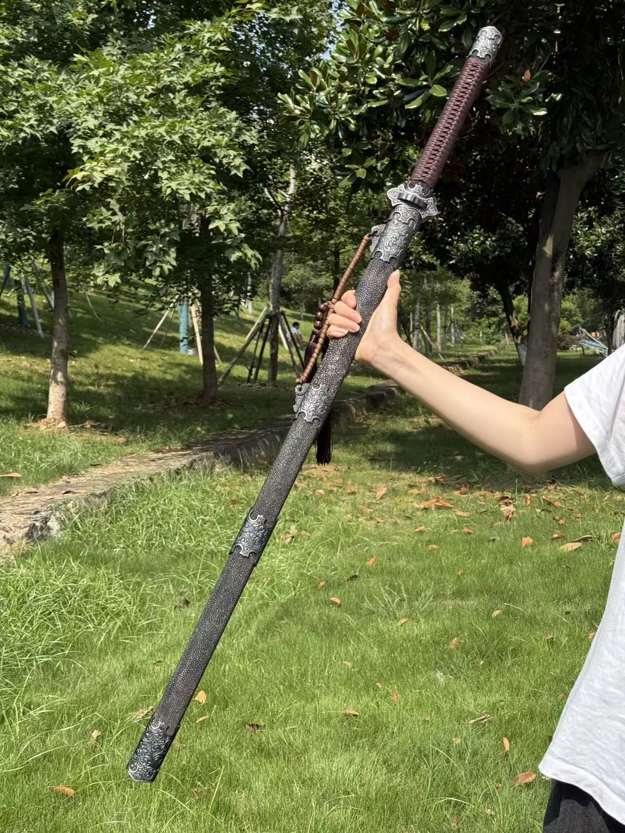 三希堂 铁地卷草唐剑