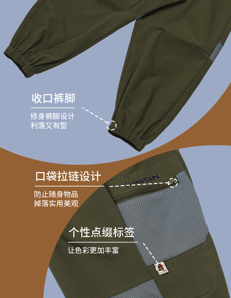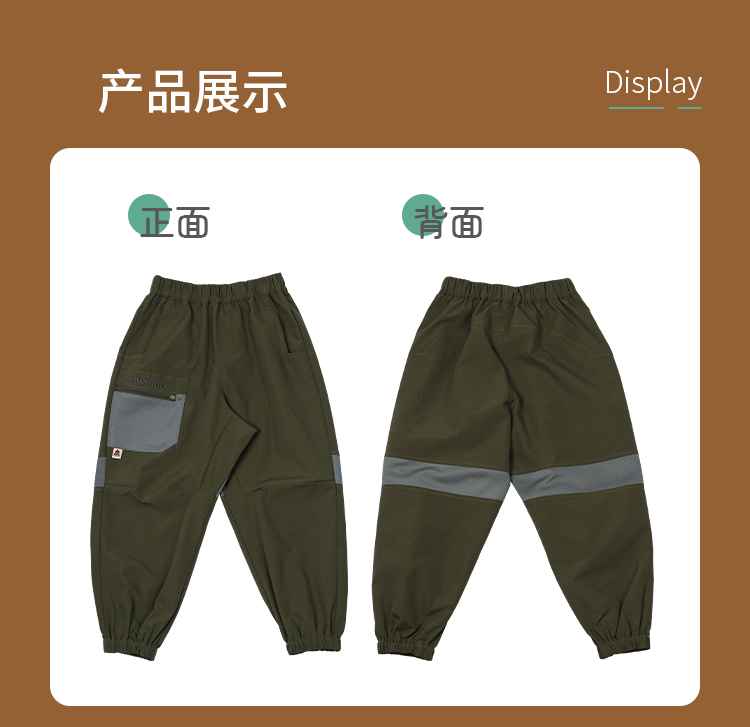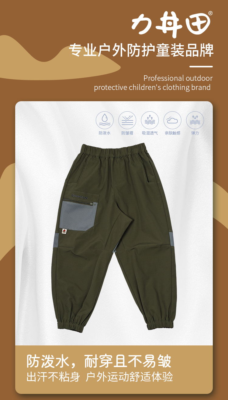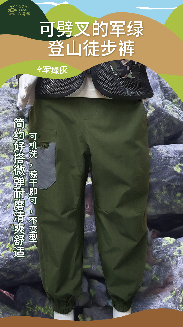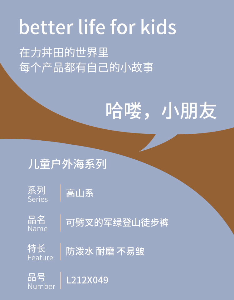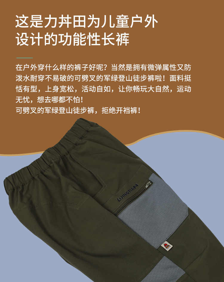 力丼田儿童户外攀山系列 档部三角拼接可劈叉长裤 防泼水耐磨不易皱可劈叉 L2211X049CAGN