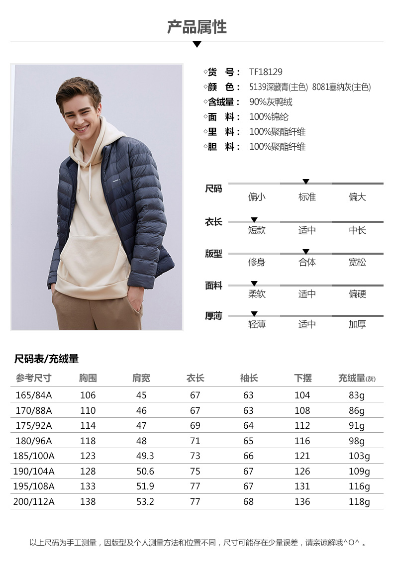 TF18129 坦博尔无帽立领拼色轻羽绒短款