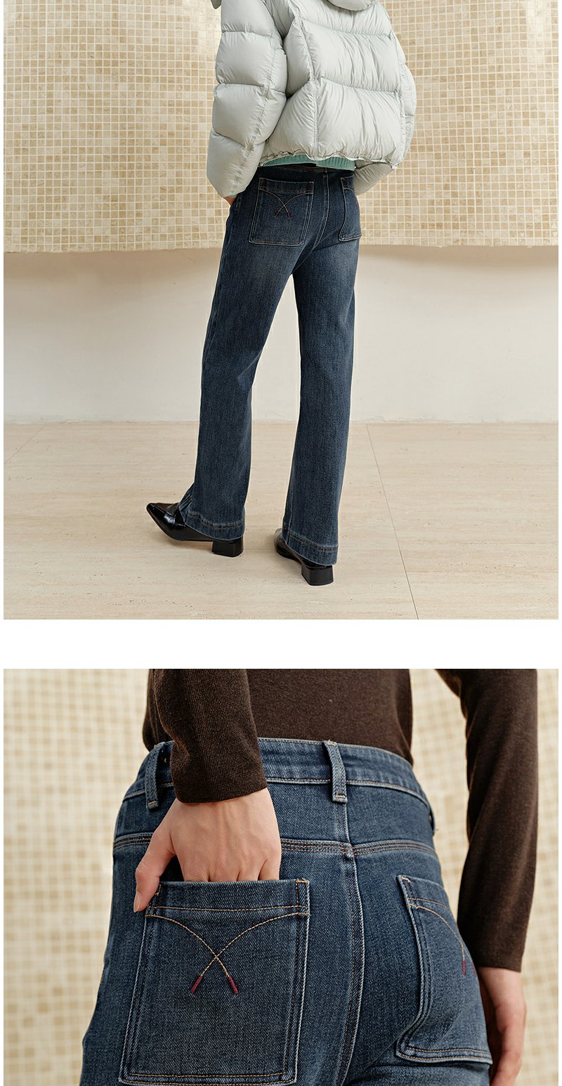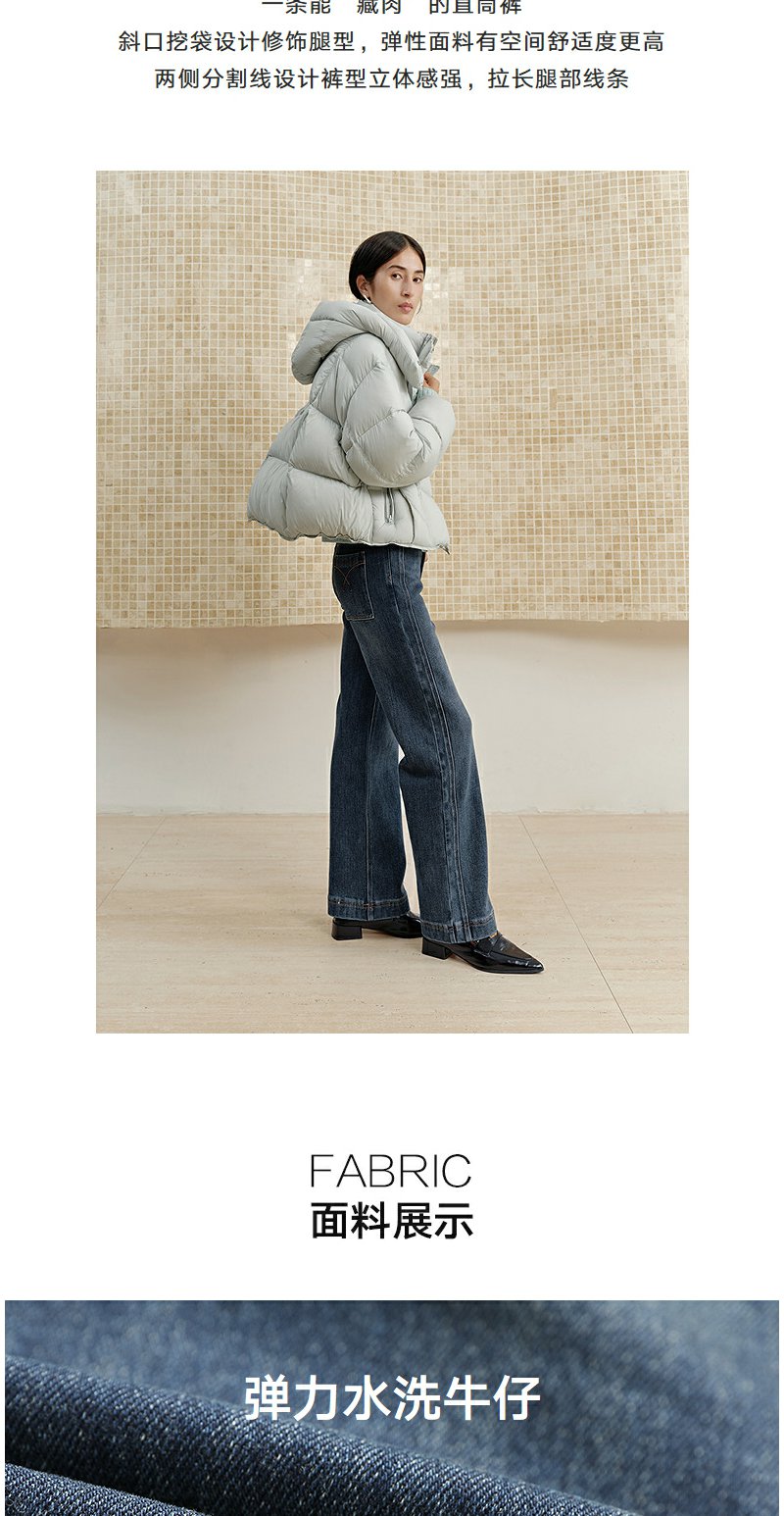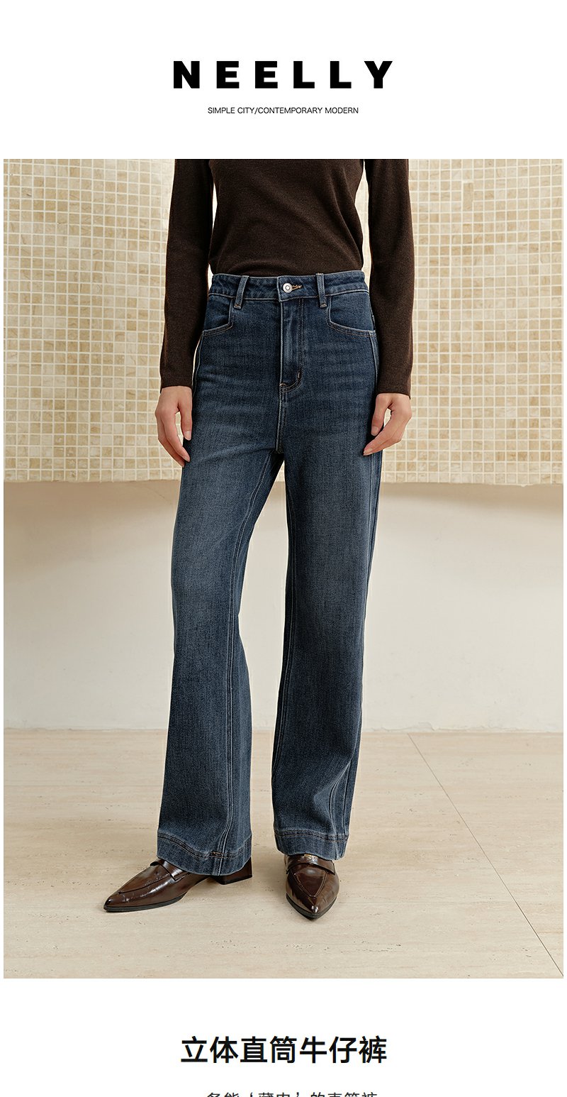 NEELLY纳俪商场同款冬季新款直筒显瘦牛仔裤女百搭立体休闲长裤N25102H01055