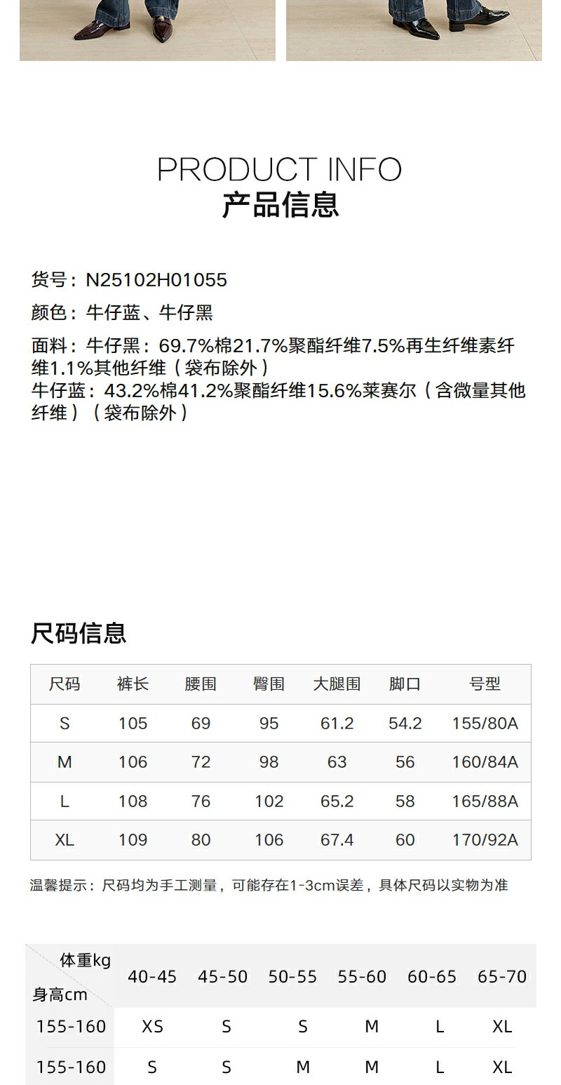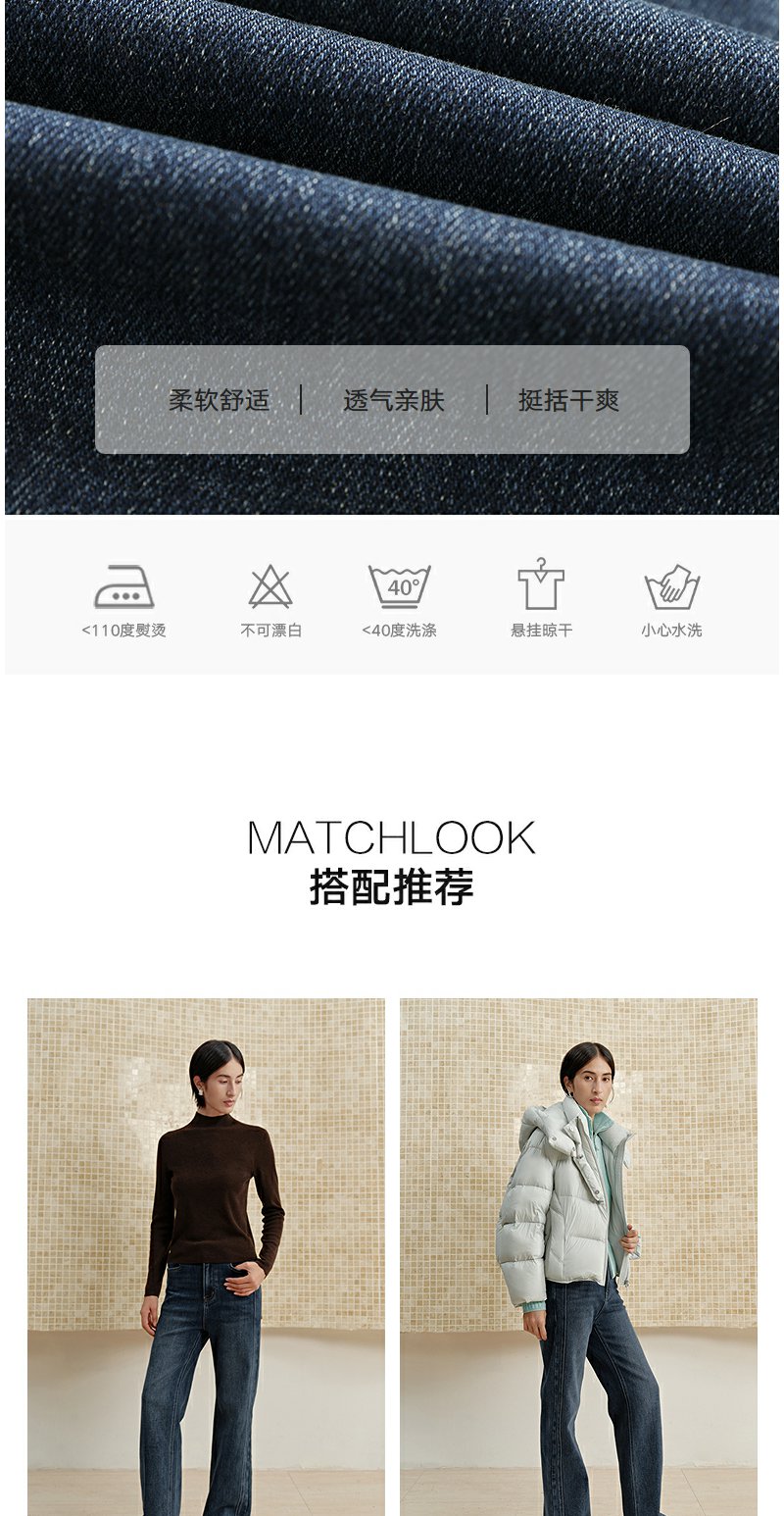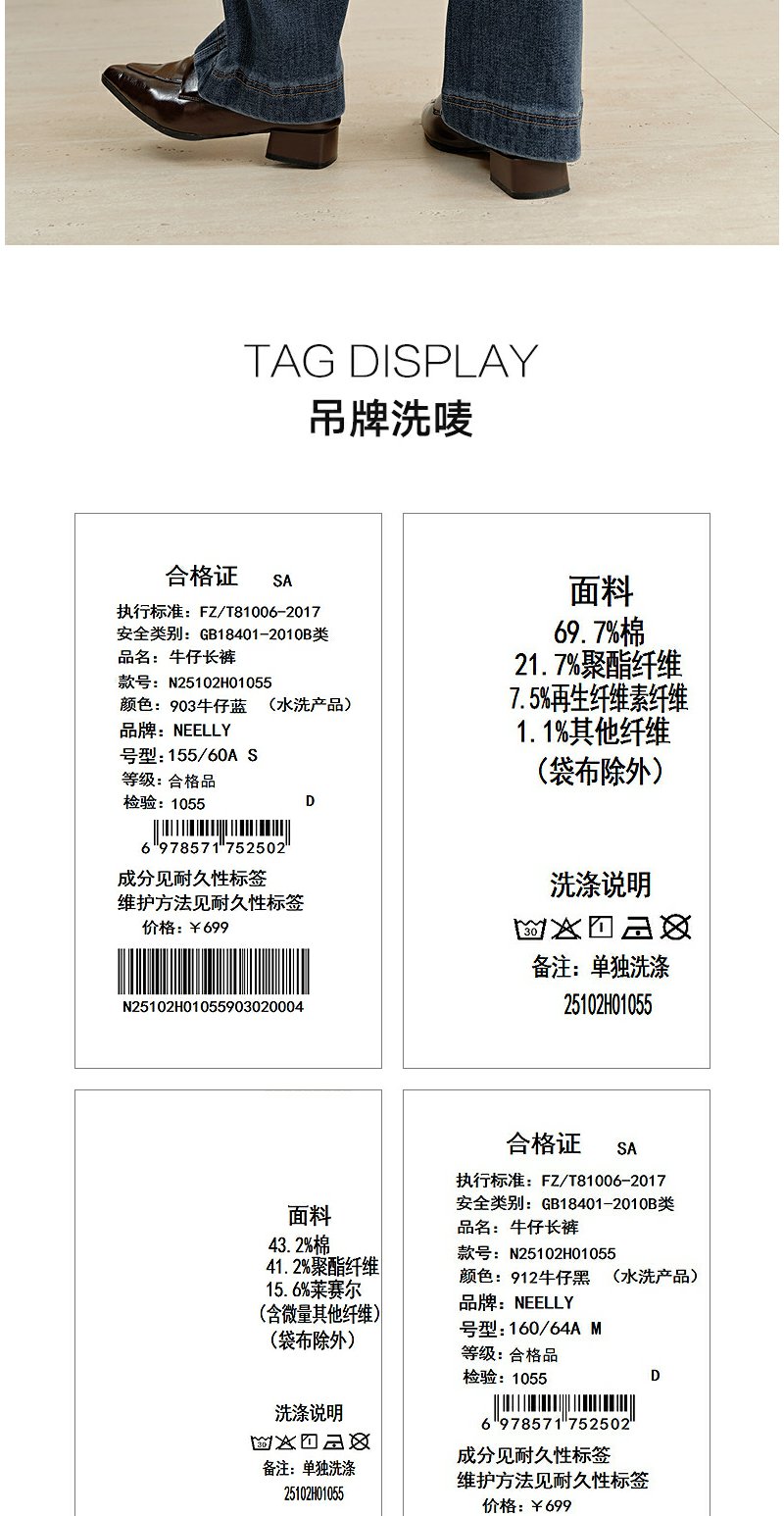 NEELLY纳俪商场同款冬季新款直筒显瘦牛仔裤女百搭立体休闲长裤N25102H01055