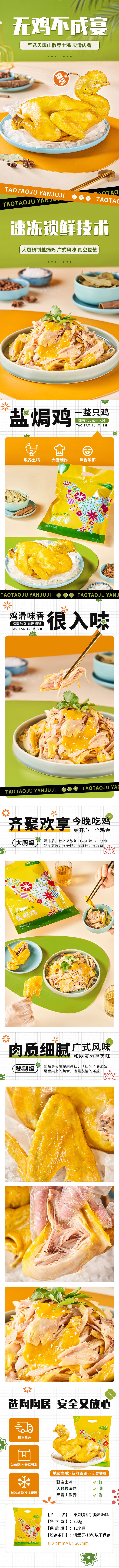 【老字号】陶陶居 传统咸香盐焗鸡 整只鸡900克2只【顺丰冷链包邮】
