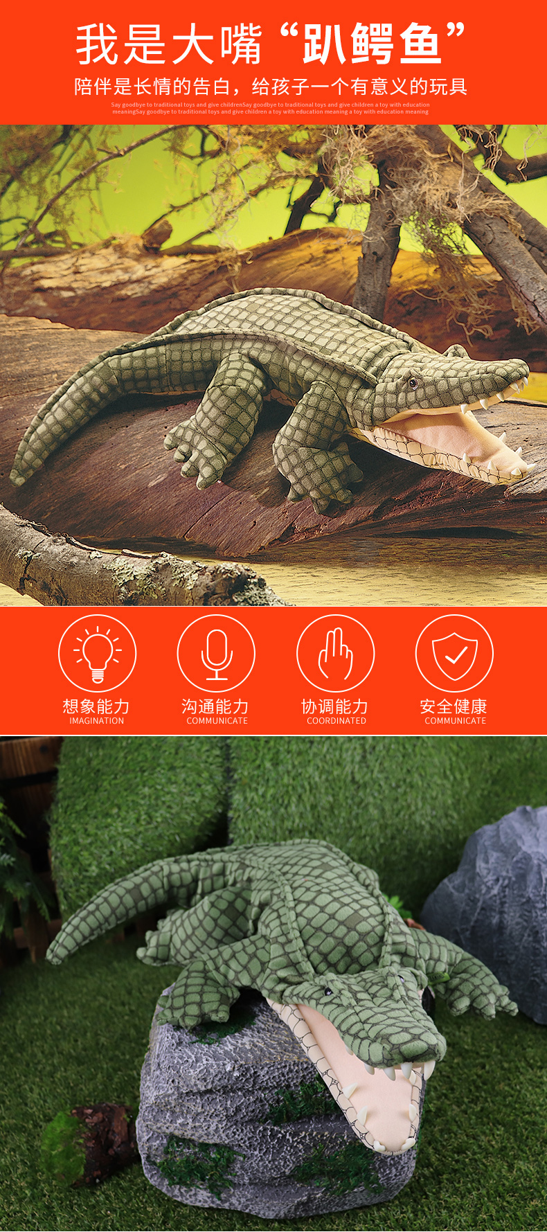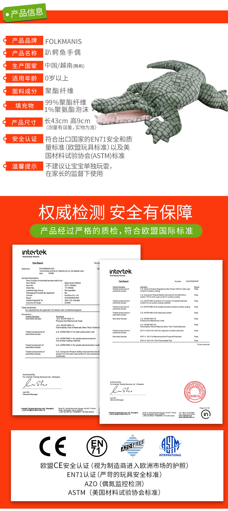 Folkmanis Puppets趴鳄鱼玩具/2130玩偶毛绒玩具礼物