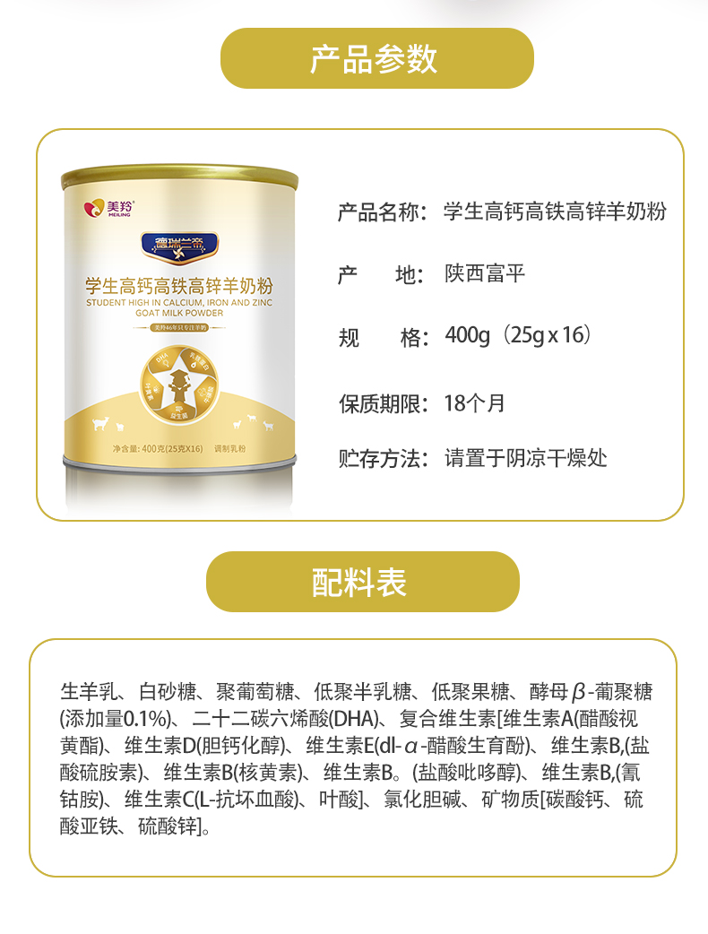 【新品上市】德瑞兰帝学生高钙高铁高锌羊奶粉400g罐装