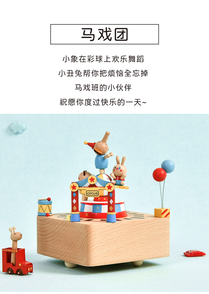 猫的天空之城八音盒《马戏团》木质卡通女生音乐盒机械生日礼物