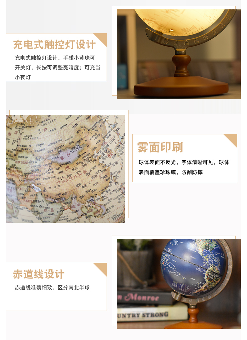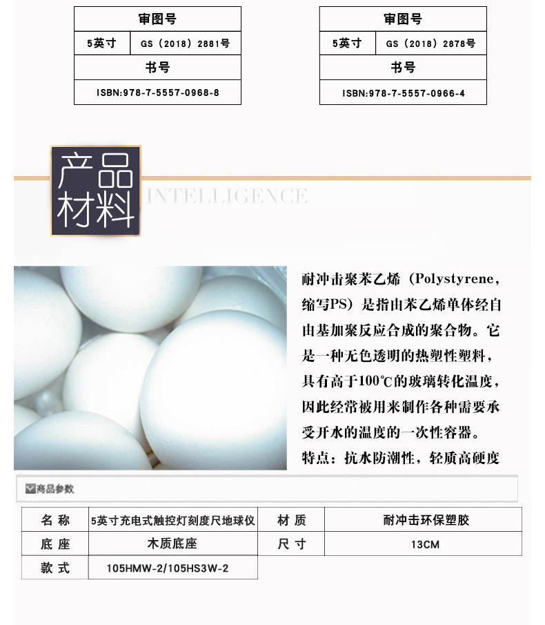 朋宸中文版卫星有灯触控地球仪 5英寸/13CM/PC-105HMW-2