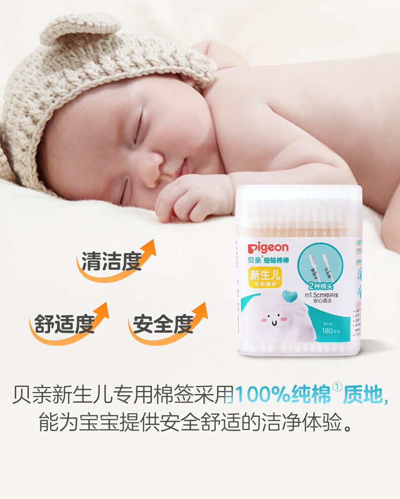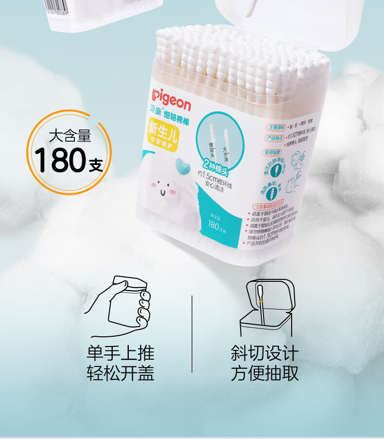 贝亲 棉棒180支筒装
