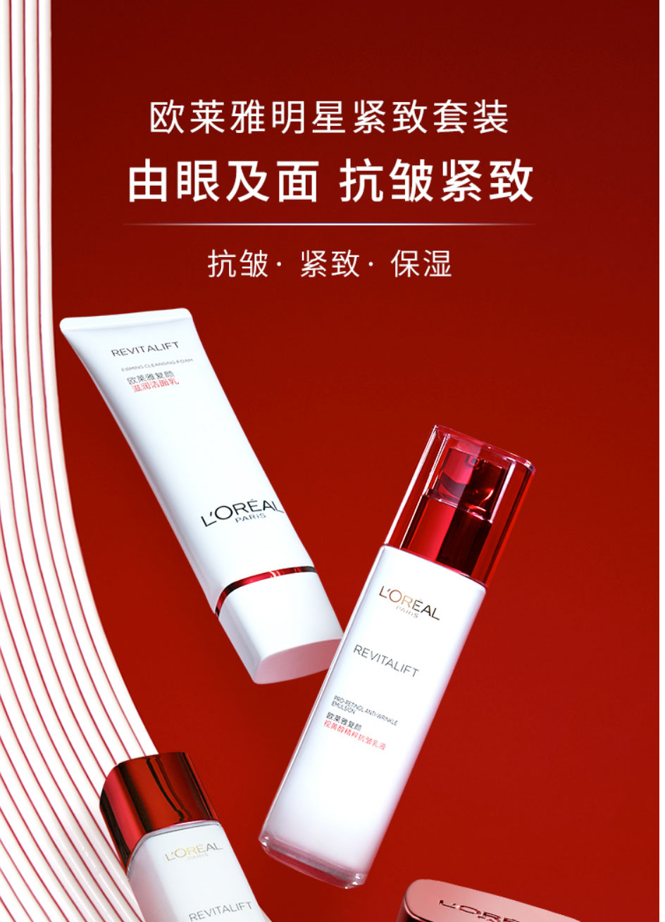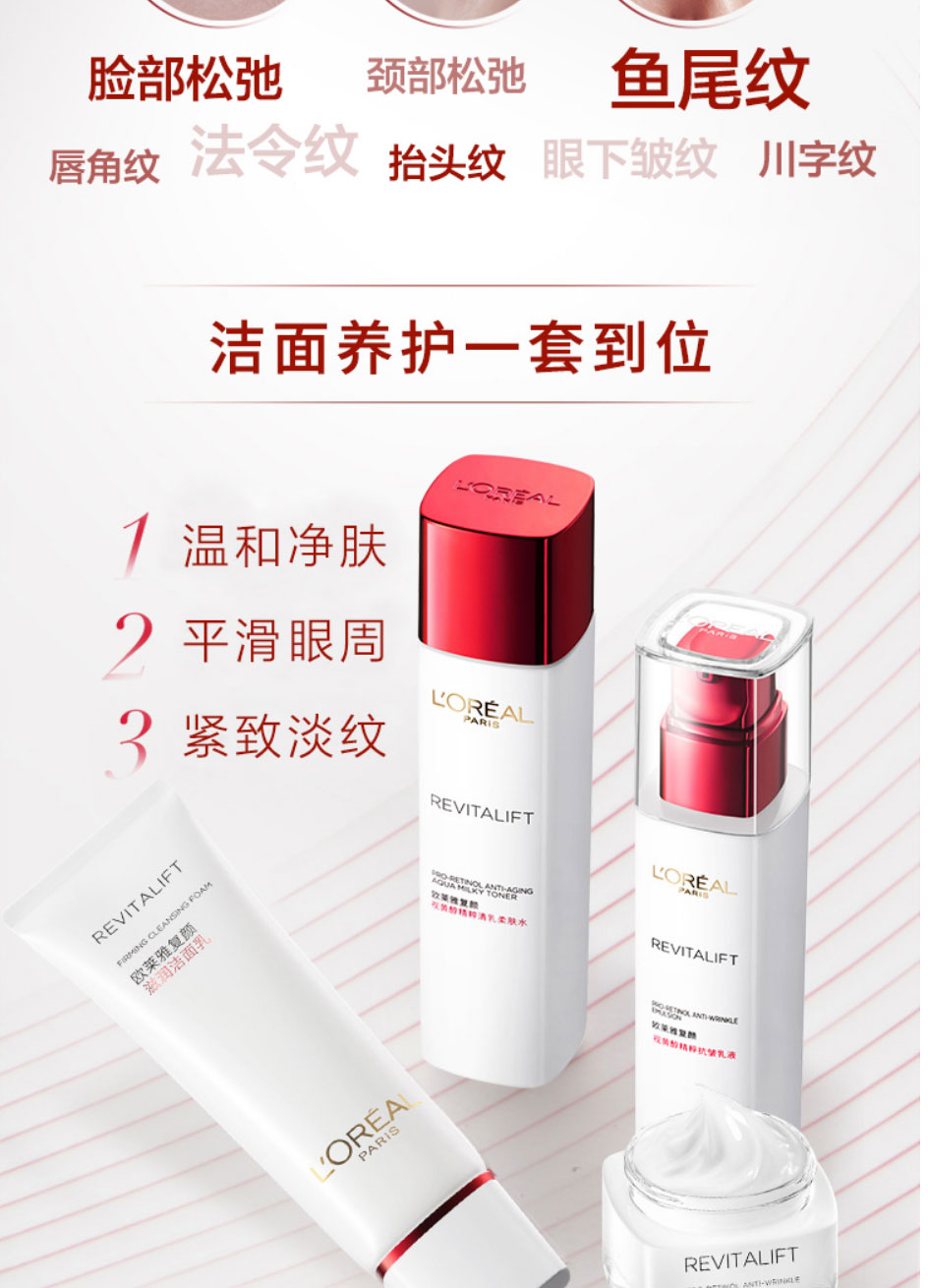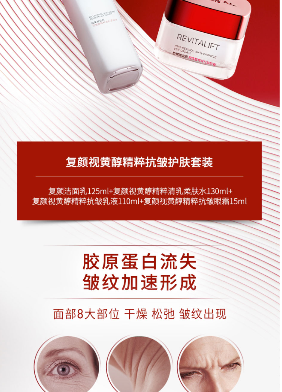 欧莱雅(LEAL)复颜视黄醇抗皱护肤套装新年礼盒(洗面奶+水+眼霜+乳液)