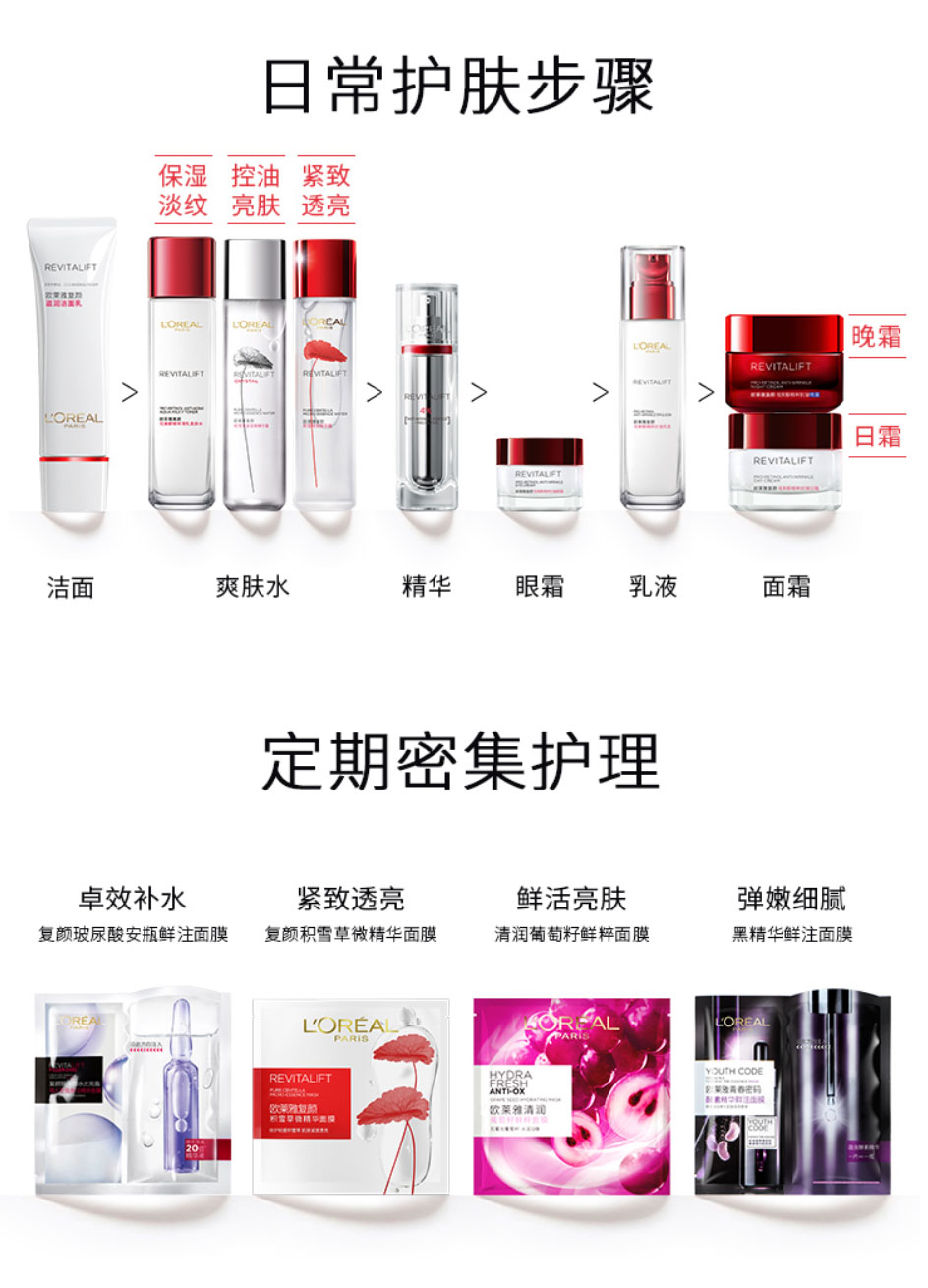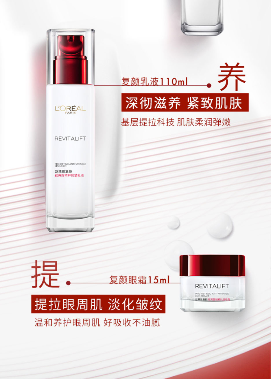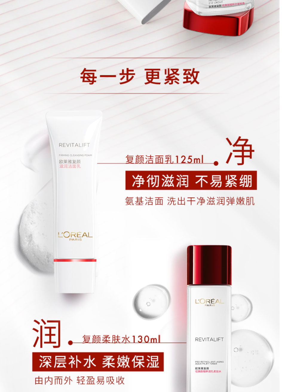 欧莱雅(LEAL)复颜视黄醇抗皱护肤套装新年礼盒(洗面奶+水+眼霜+乳液)