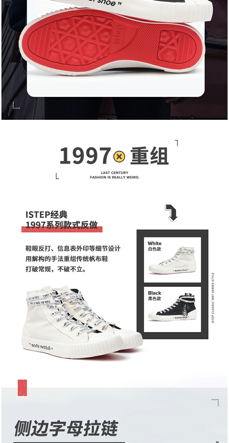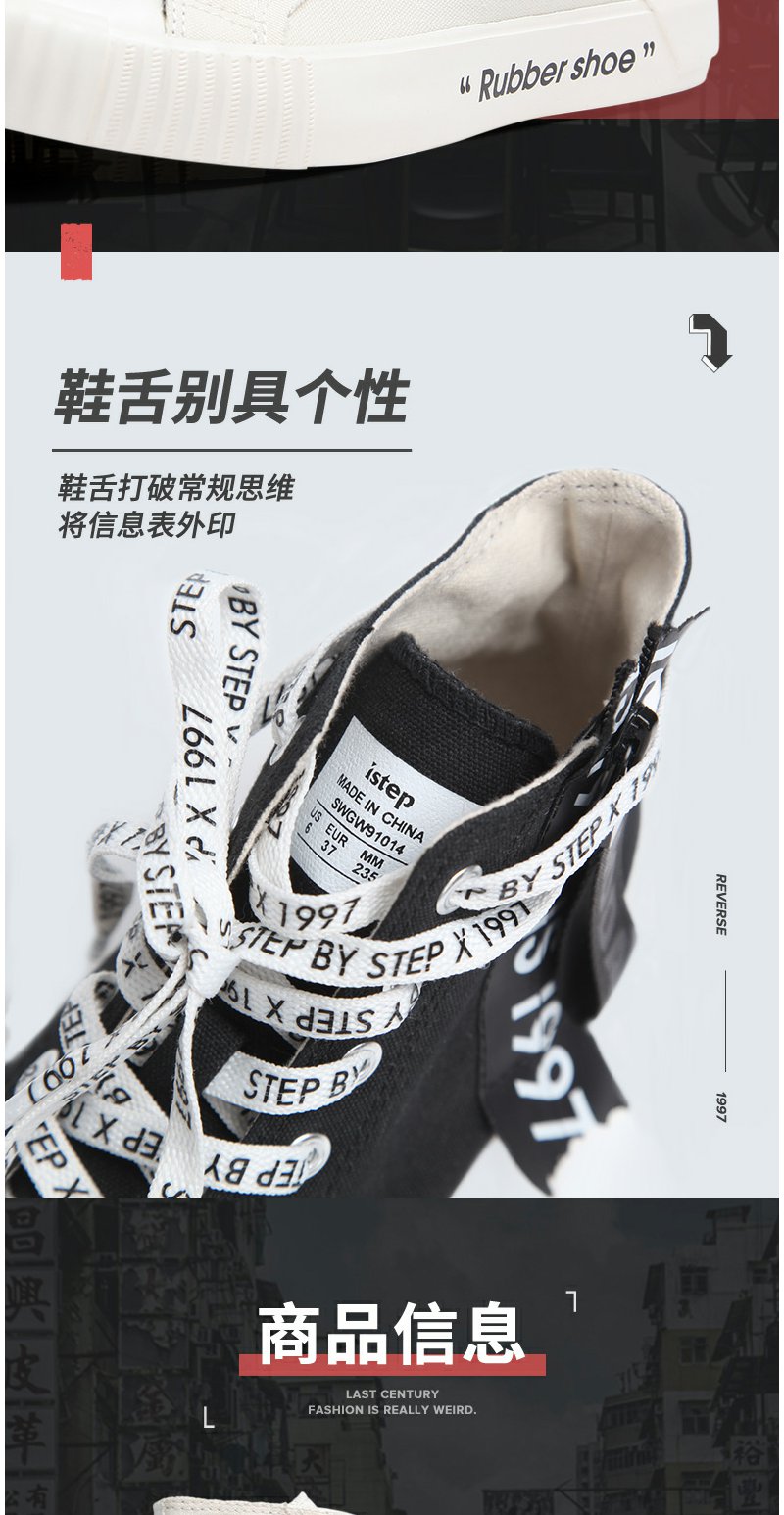 iSTEP高帮帆布鞋2023新款学生百搭韩版男女同款经典潮流板鞋