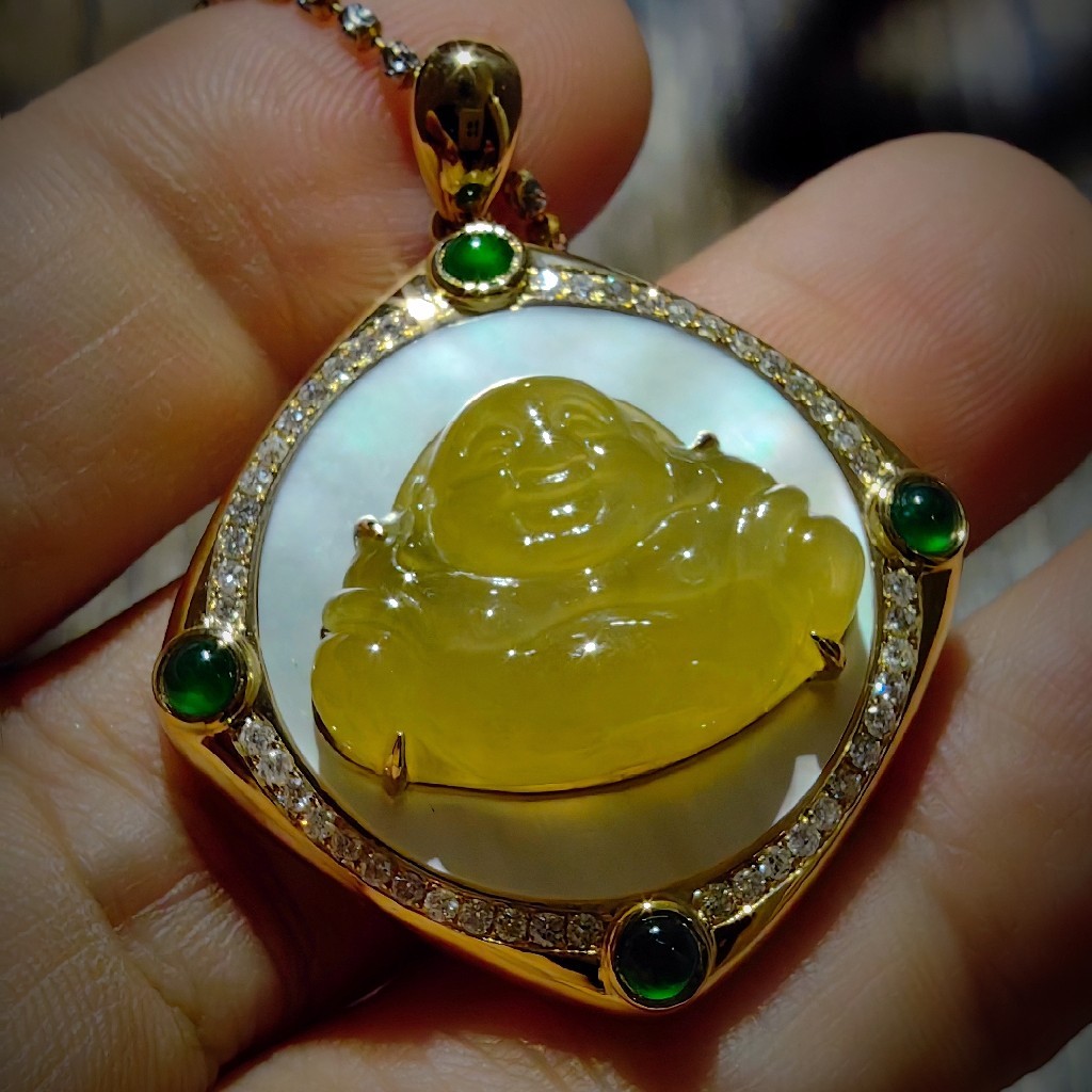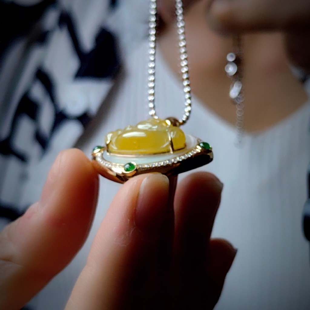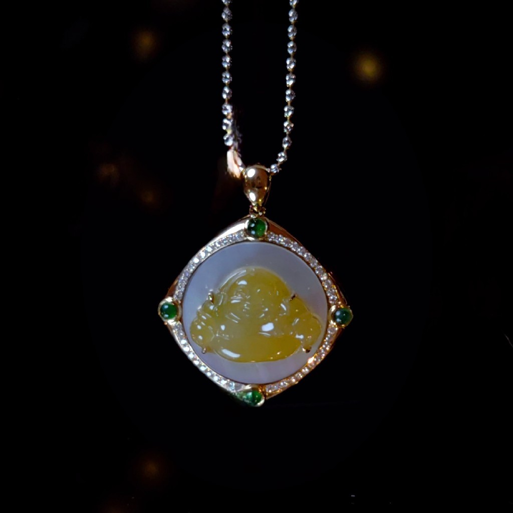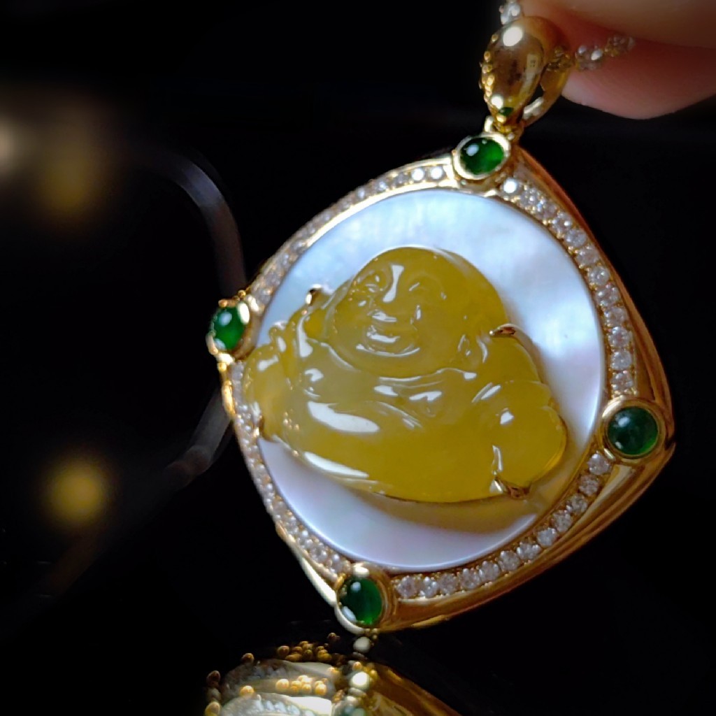 商 品:18k设计款“鸡油黄”翡翠弥勒佛