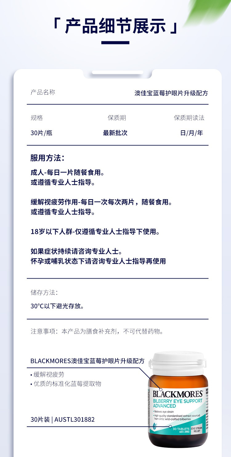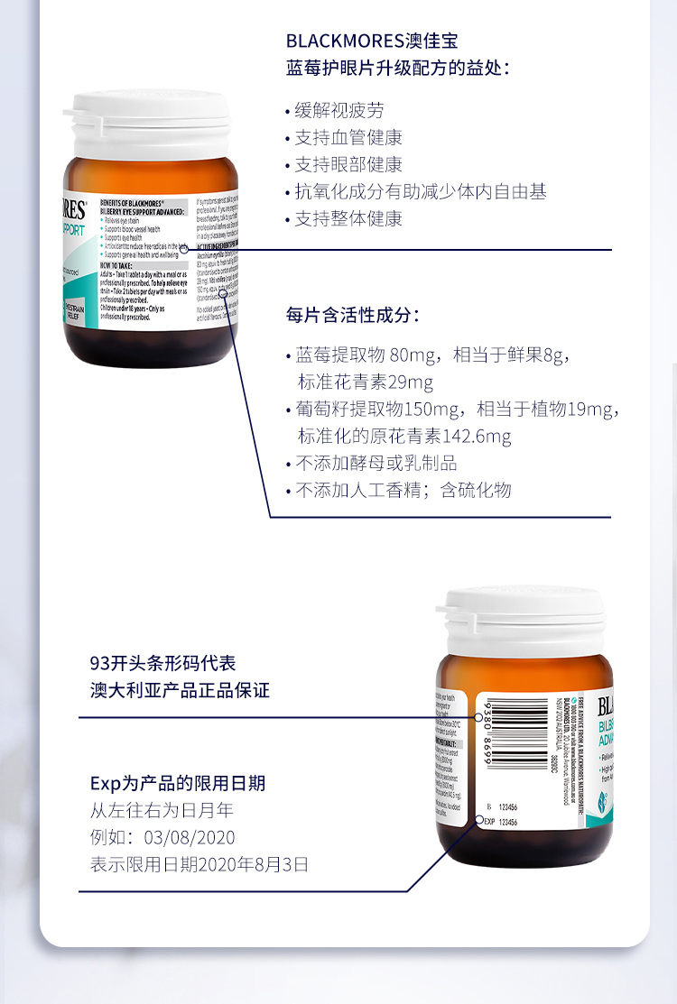 Blackmores 澳佳宝蓝莓护眼片30粒【安琪全球购.保税仓直发】
