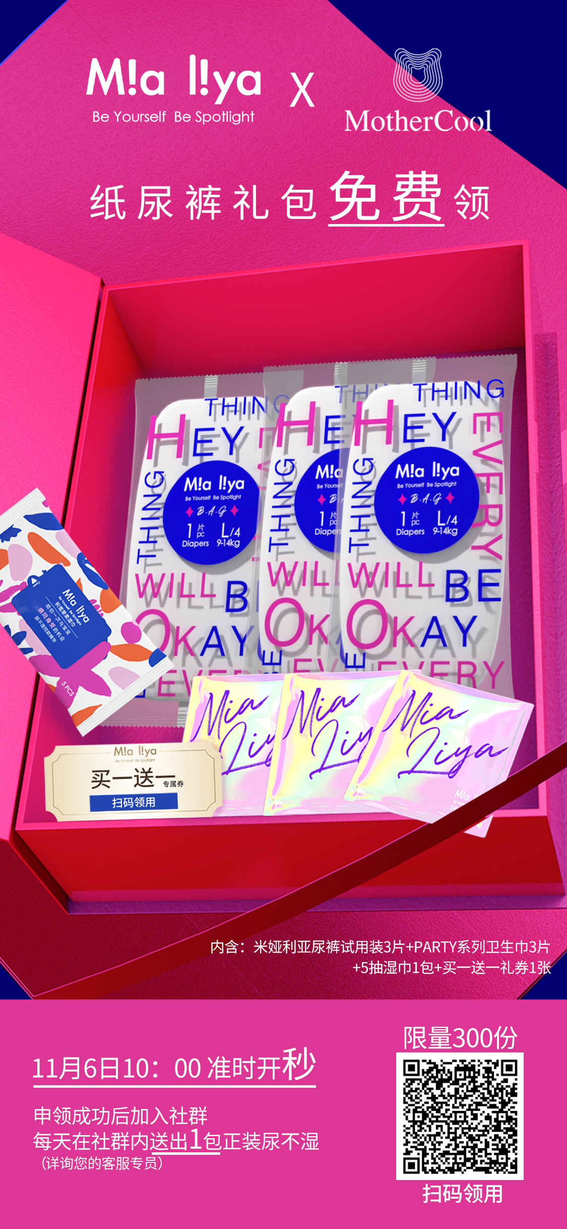 (【买一送一优惠卡】:顾客持卡至妈妈酷旗下所有门店即可享正价购米娅利亚尿不湿任意尺码买一包送一包,赠送活动不累计,每人仅限持券购买1组)