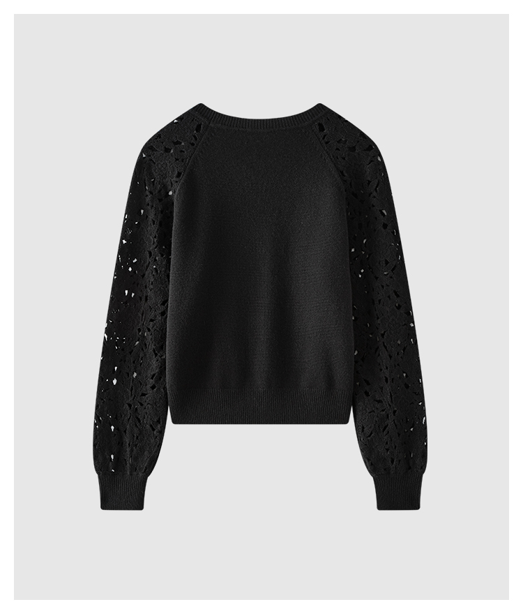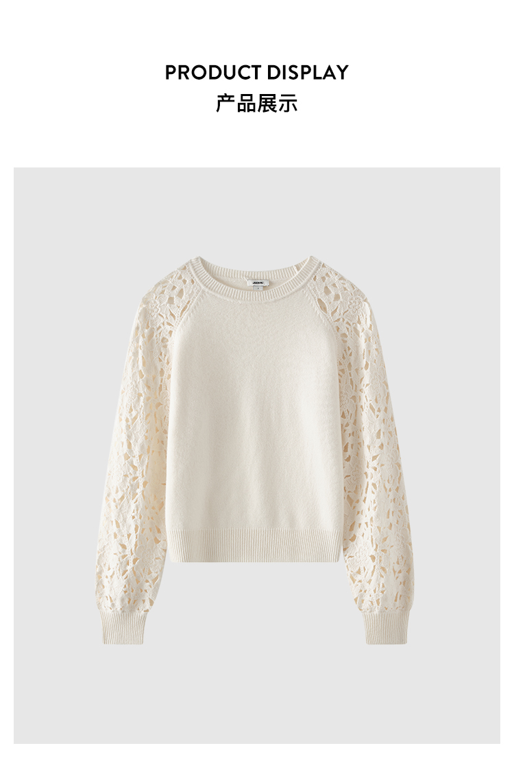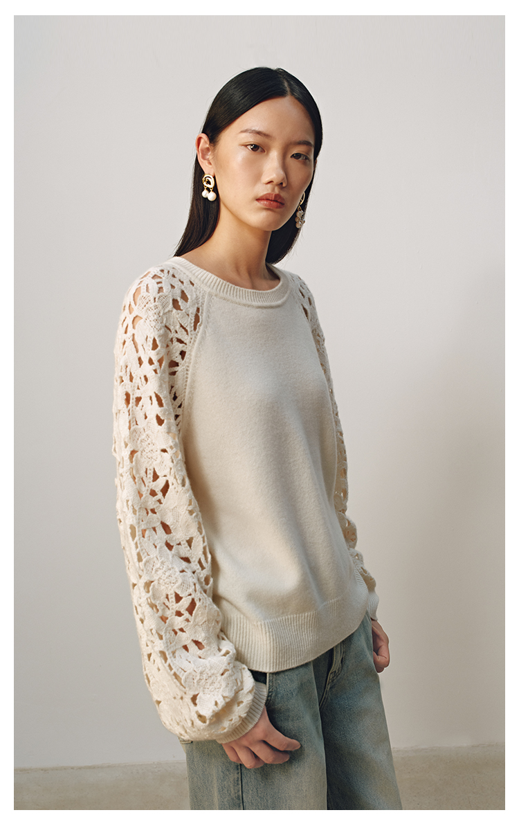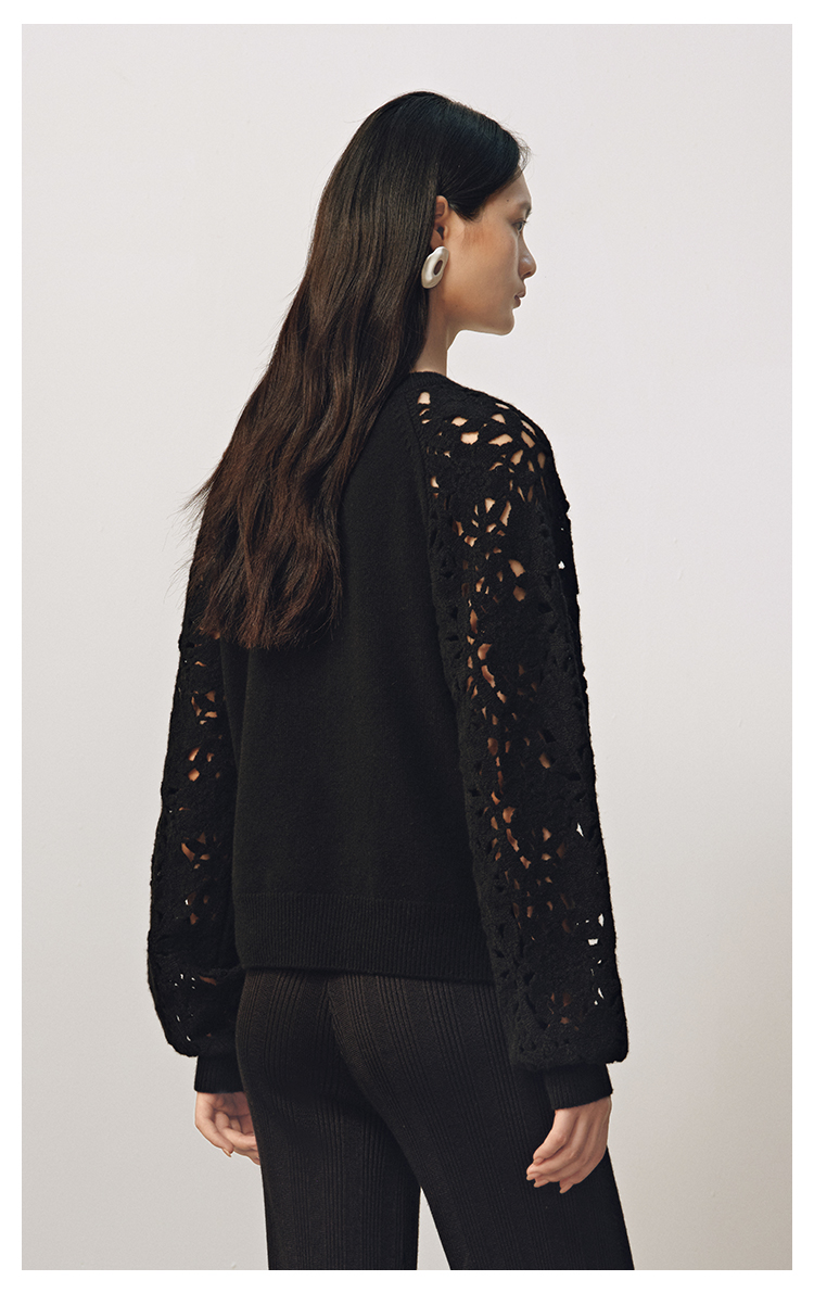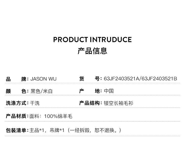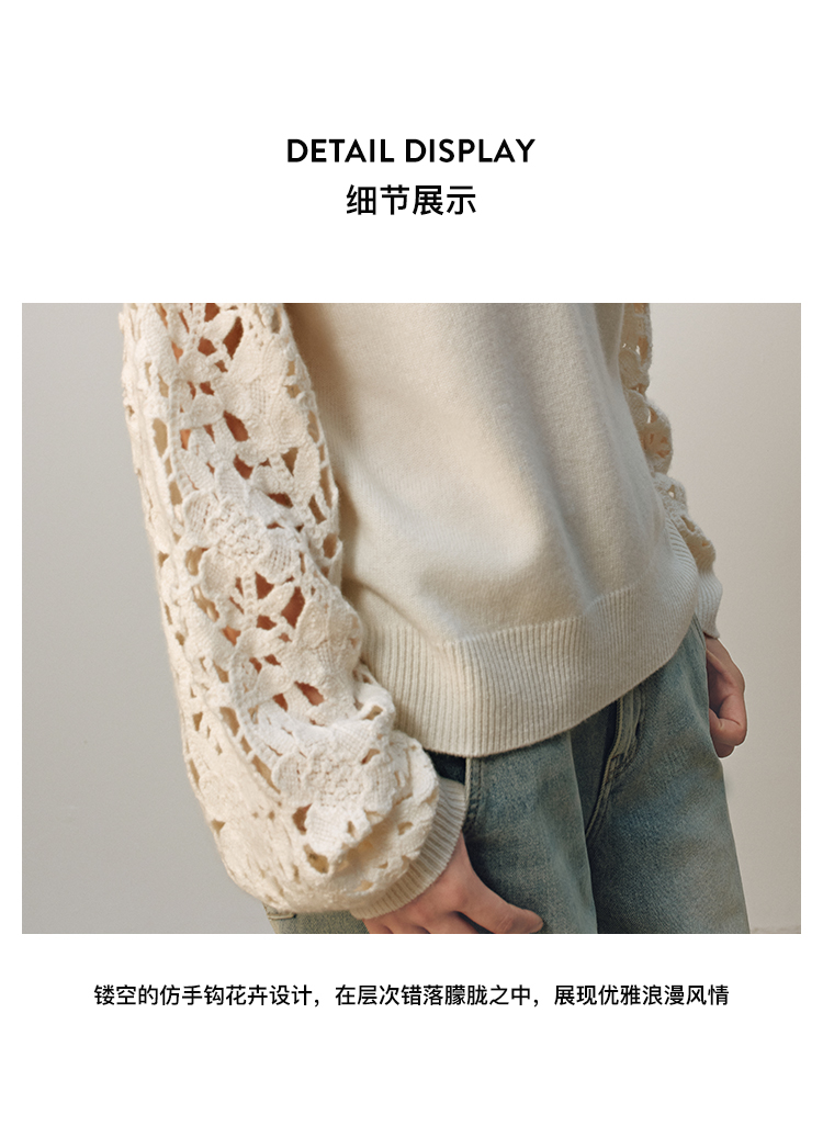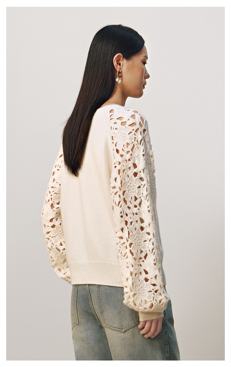 【JASON WU】(多色)秋季新款花朵镂空绵羊毛拼接宽松花卉设计上衣针织衫女