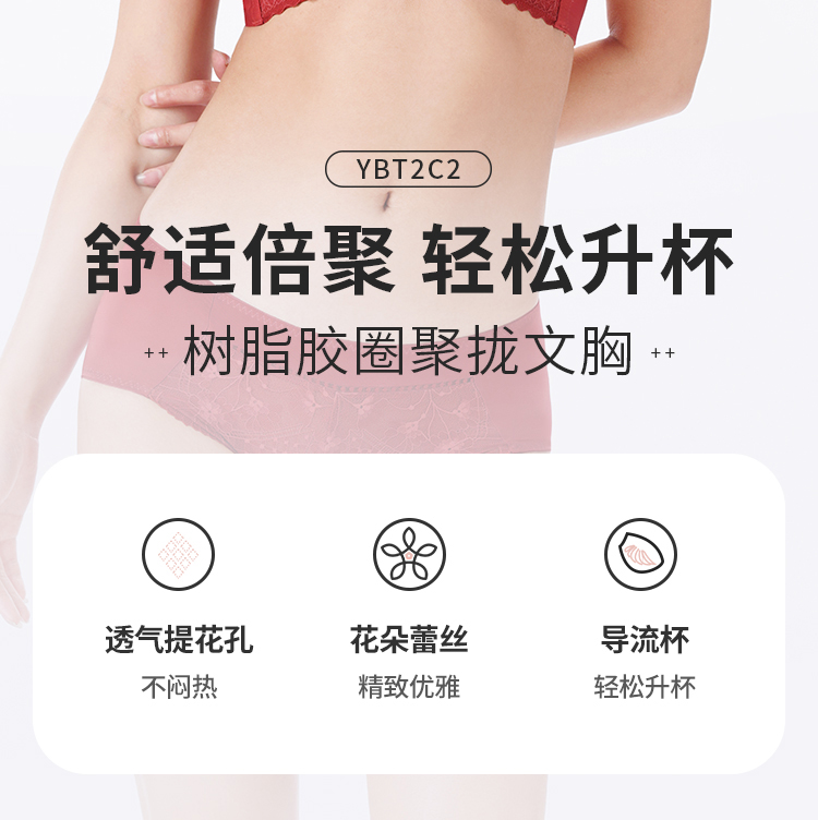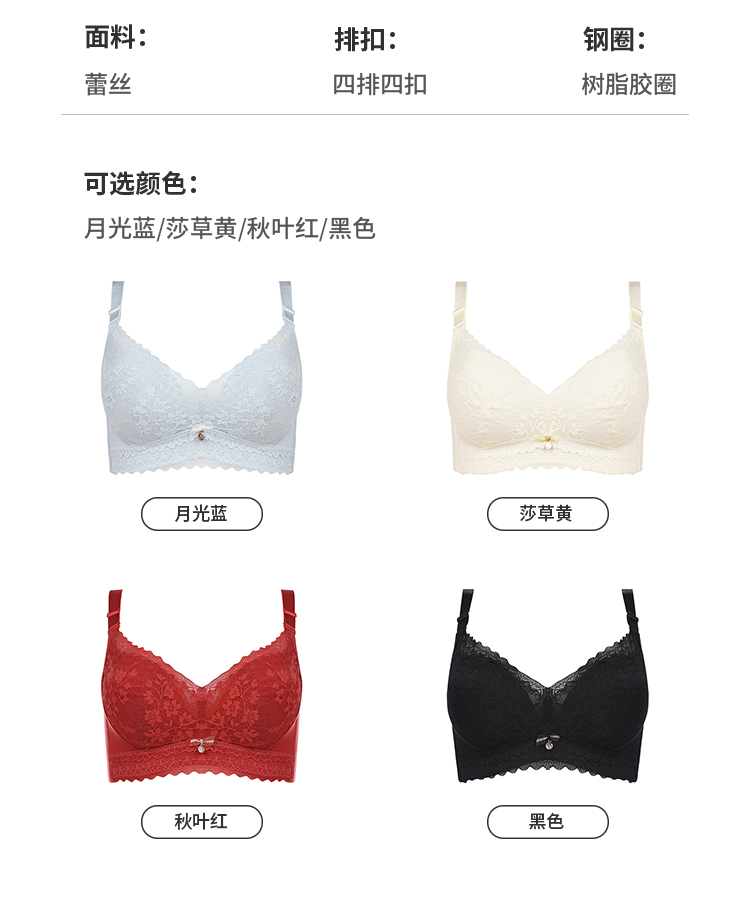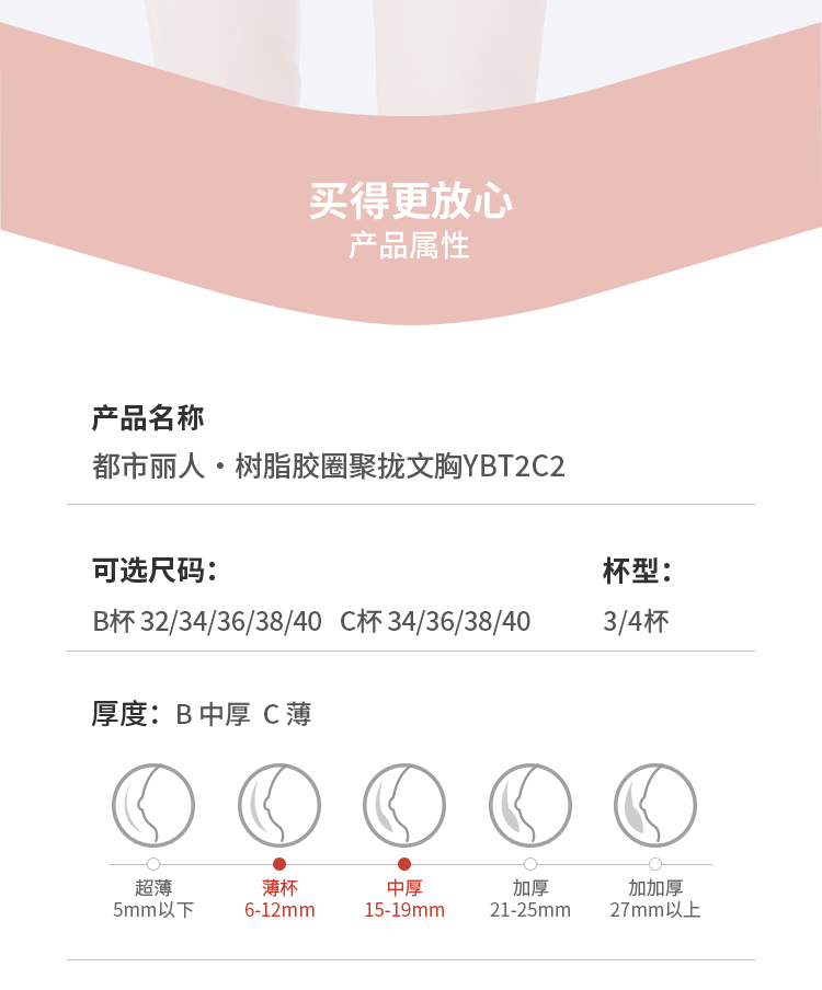 都市丽人内衣聚拢升杯常规文胸蕾丝B:中厚C:薄文胸3/4杯四排扣树脂胶圈YBT2C2