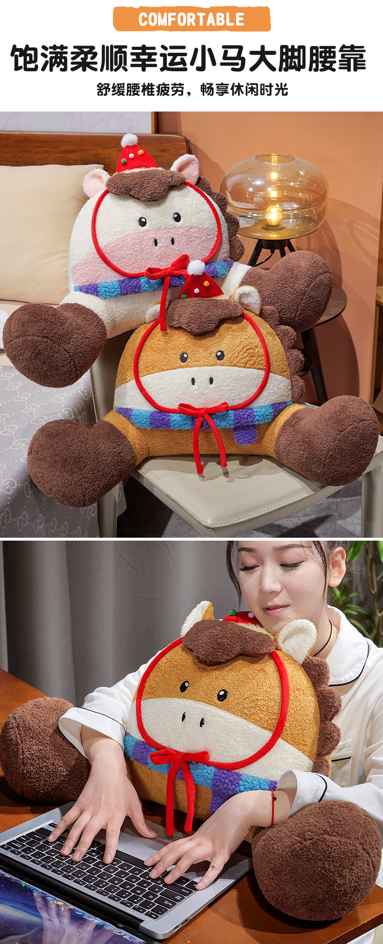 自然醒幸运小马大脚拥抱式腰靠QYL