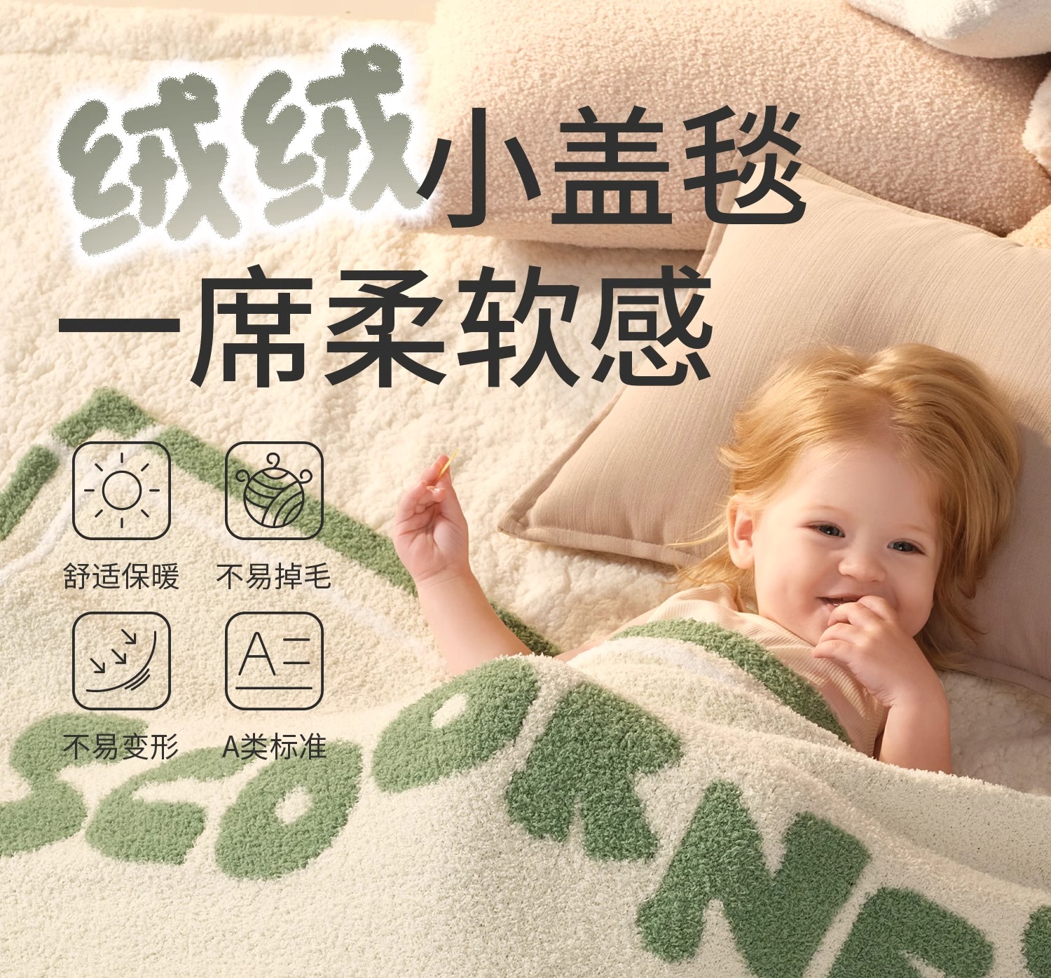 科巢婴儿半边绒毛毯宝宝秋冬盖毯儿童午睡毯子幼儿园加厚被子a类