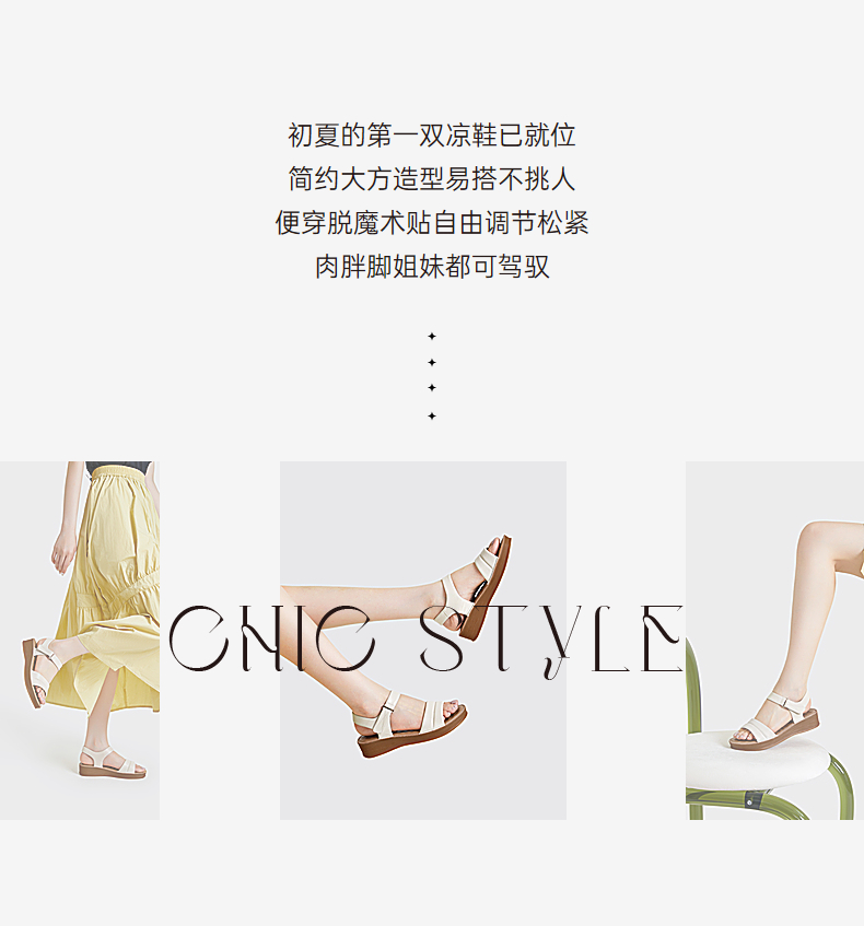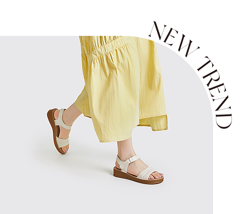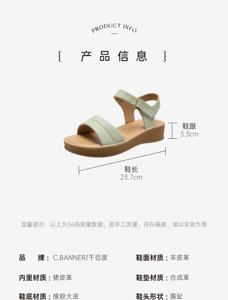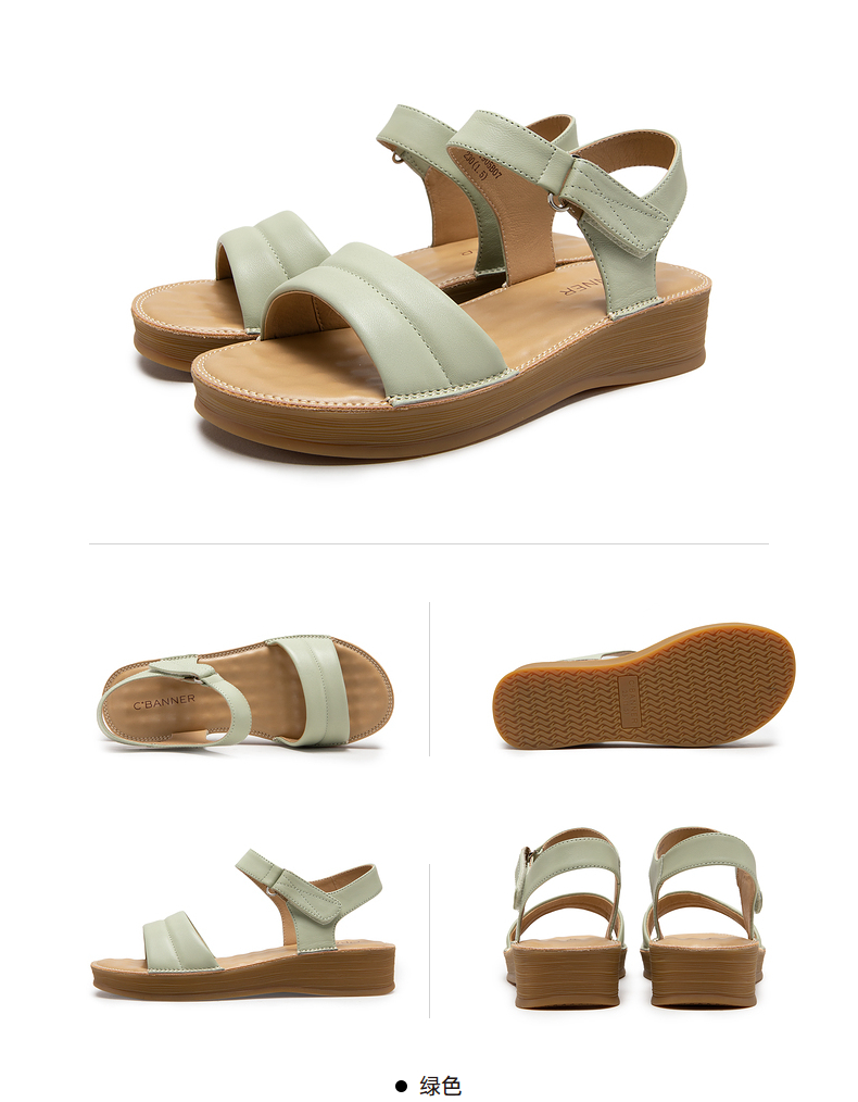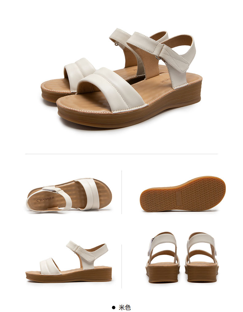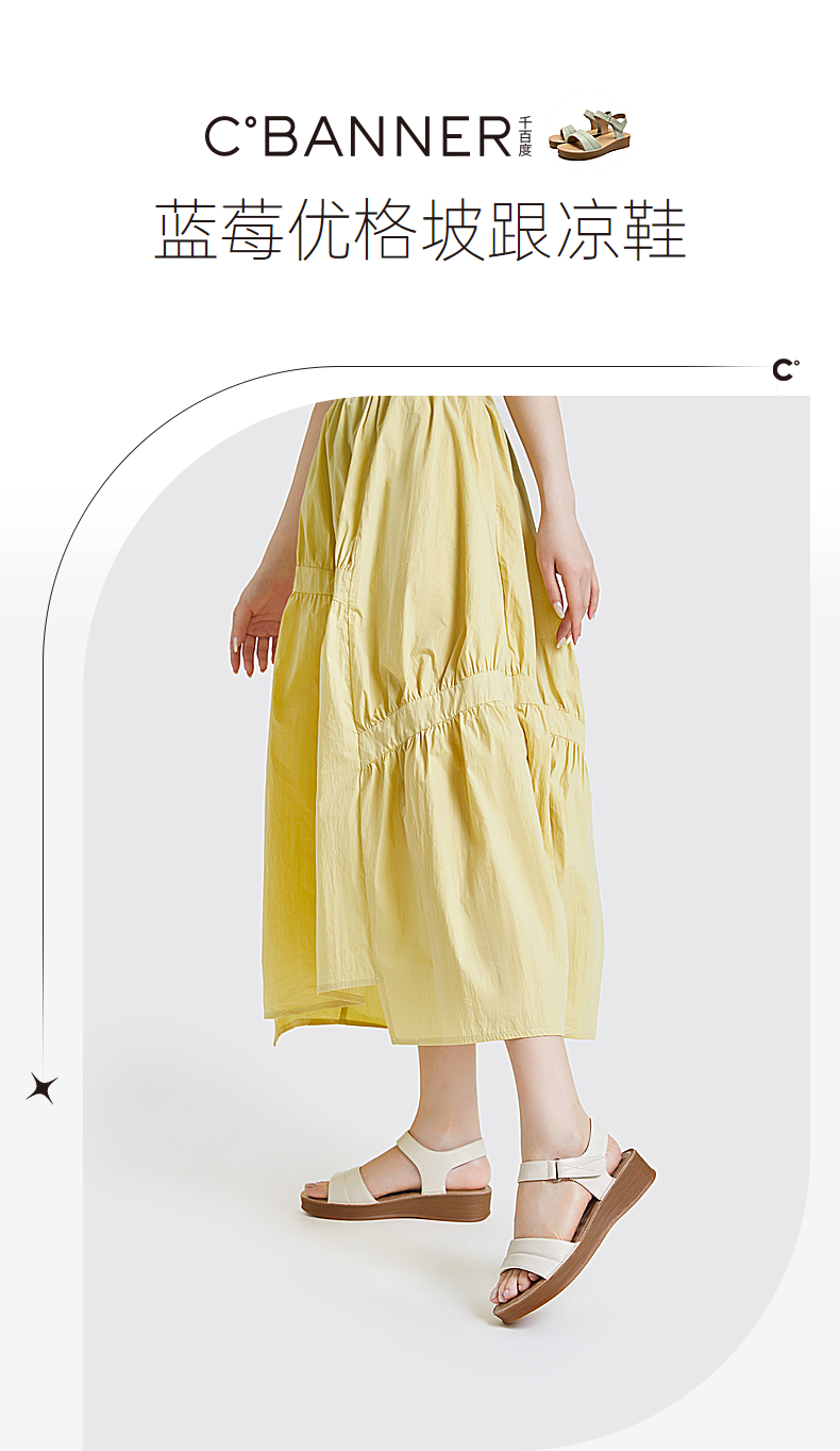 千百度女鞋夏季休闲凉鞋配裙子坡跟一字式凉鞋厚底真皮 A23331905
