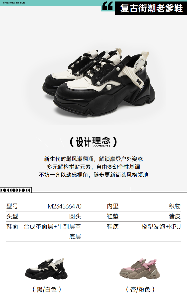 MIO米奥春季圆头高跟复古街潮运动老爹鞋舒适厚底炫酷休闲鞋女鞋M234536470