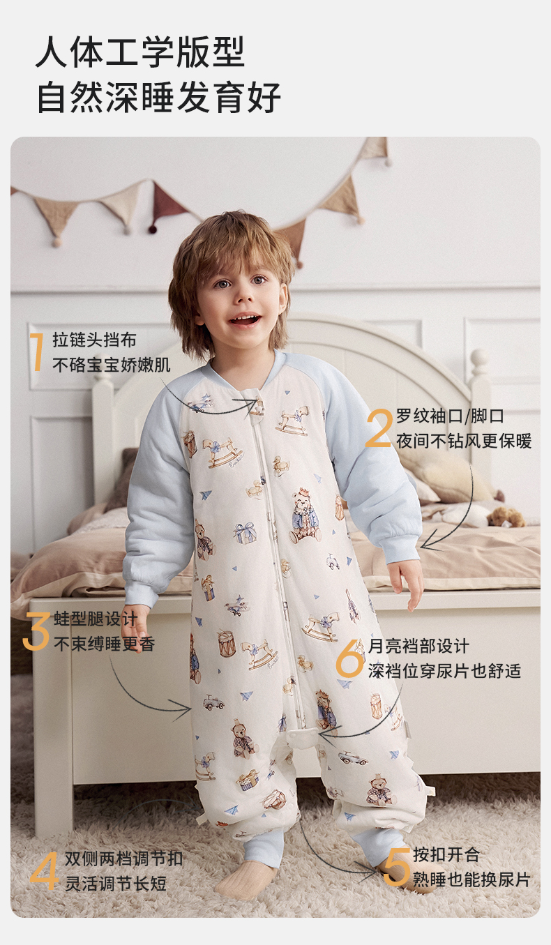 【宝宝安睡】嫚熙婴儿睡袋奶芙宝宝睡衣四季通用儿童春秋冬恒温款分腿防踢被