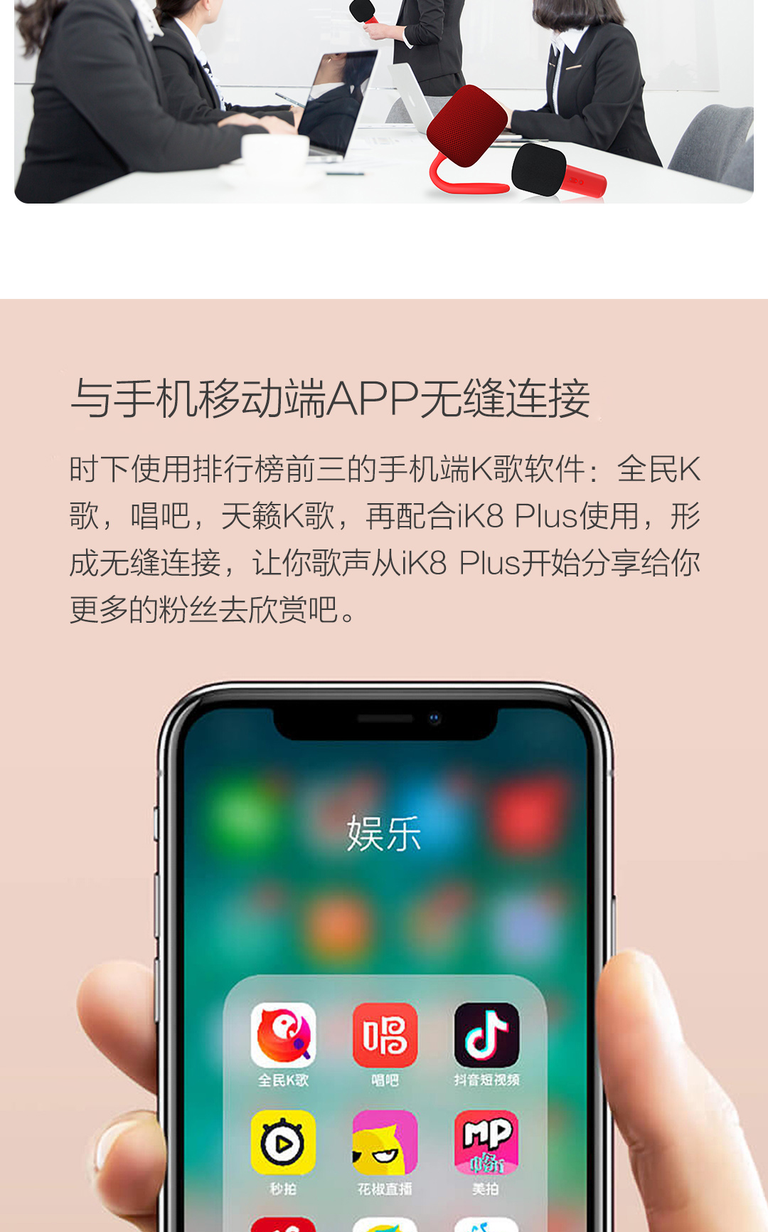 ik8plus卡拉OK音箱i手机电脑电视蓝牙家用办公专业录音麦克风