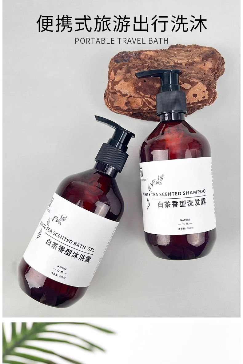 星级酒店宾馆民宿洗发水沐浴露白茶套装浴场洗浴用品300ml大瓶装