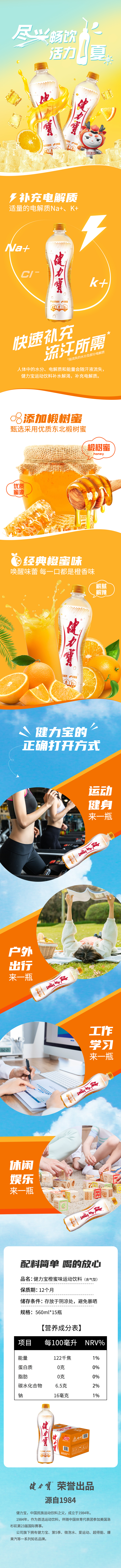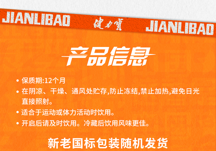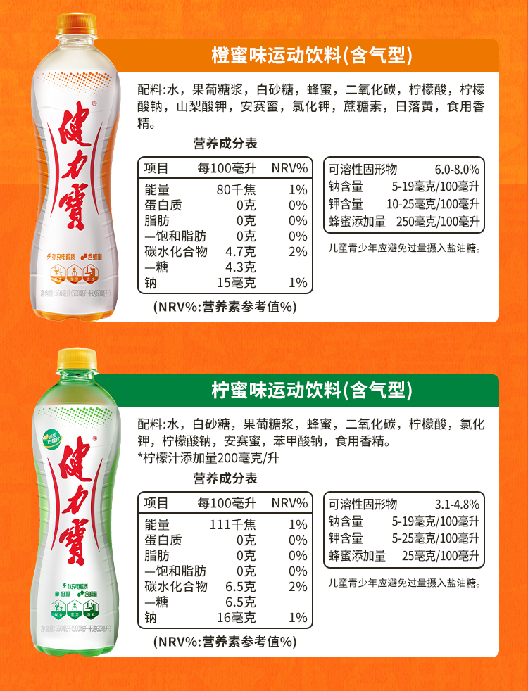 健力宝橙蜜味电解质碳酸运动饮料330ml*24罐整箱