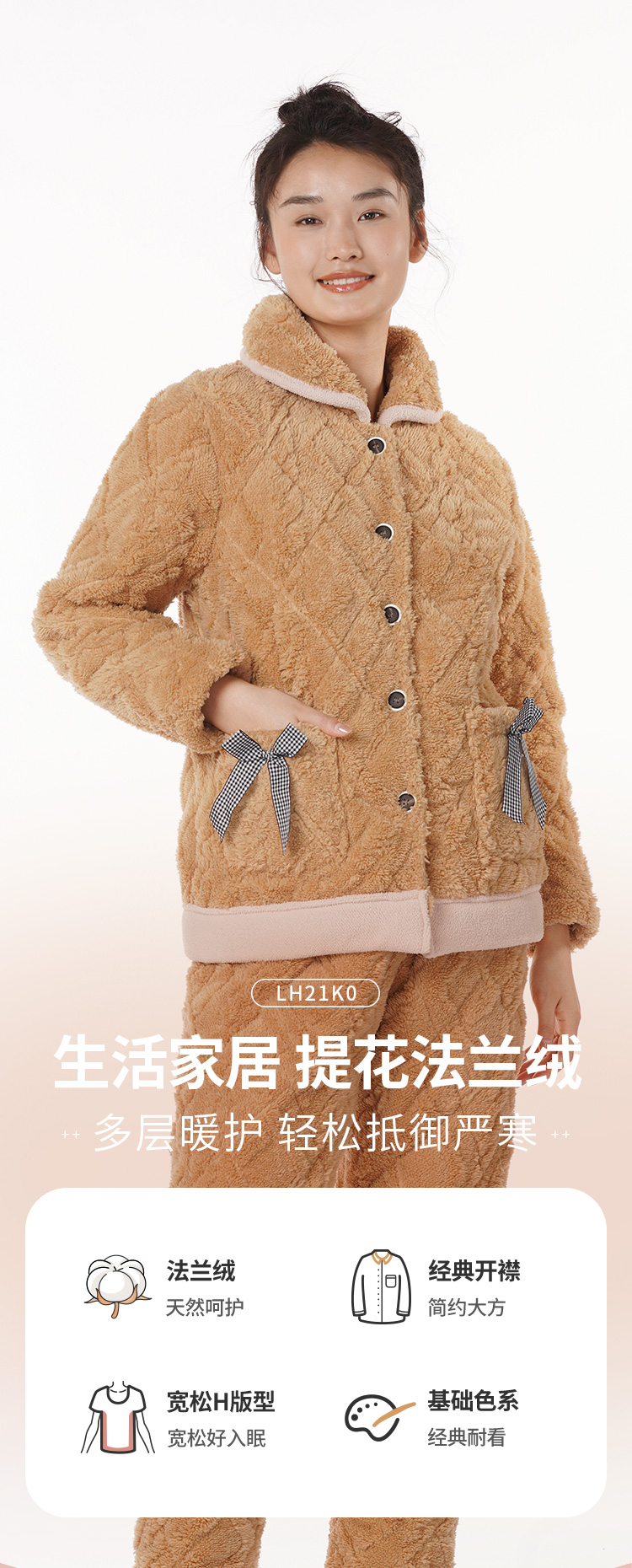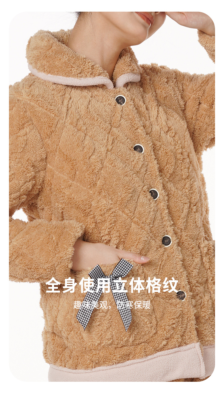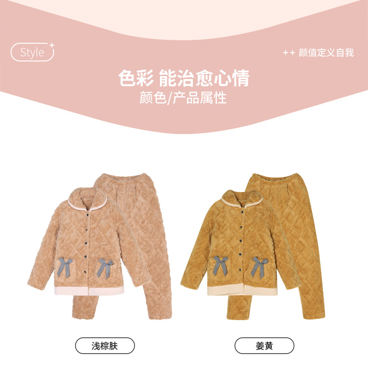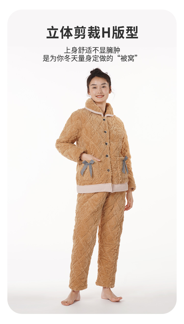 都市丽人舒适外出女士加厚夹棉套装提花法兰绒夹棉加厚家居服长袖睡衣LH21K0